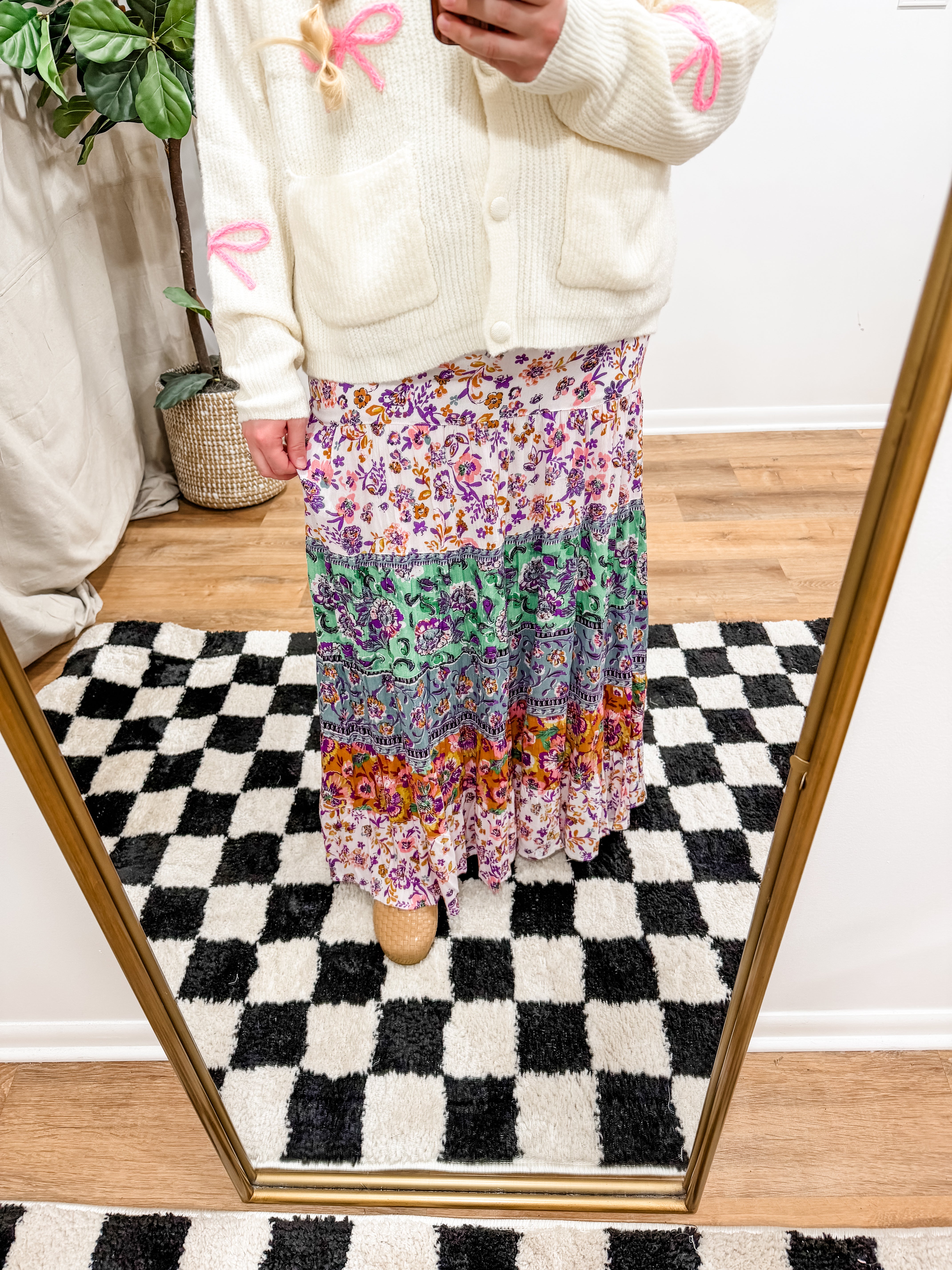 Size recommendations: true to size or size down. It runs generous. It has a stretchy, smocked waistband.
