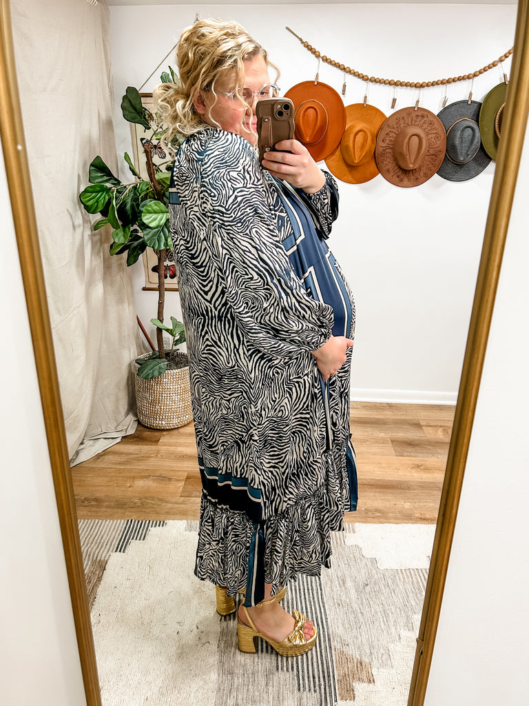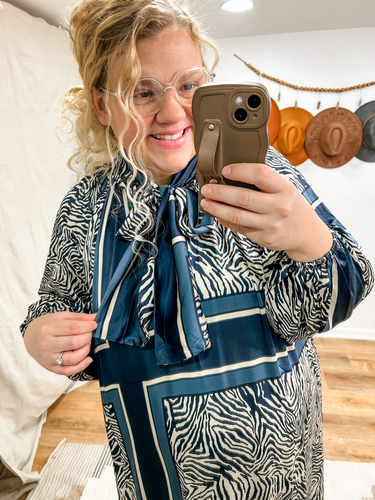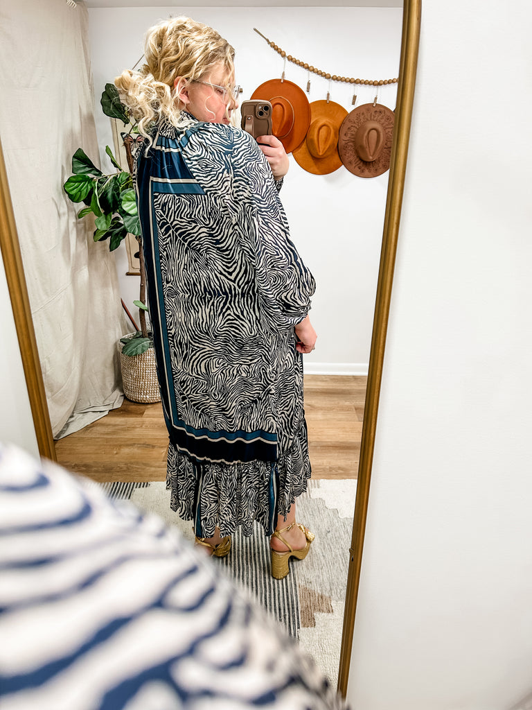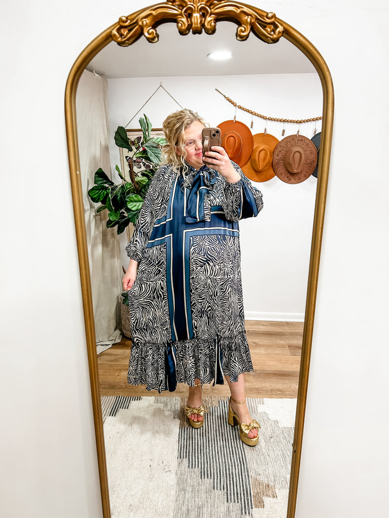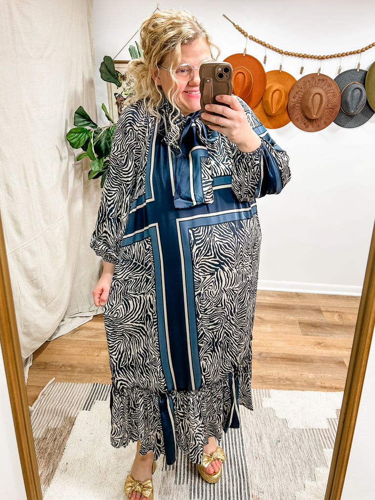 Forget Me Not Dress in Navy Zebra
