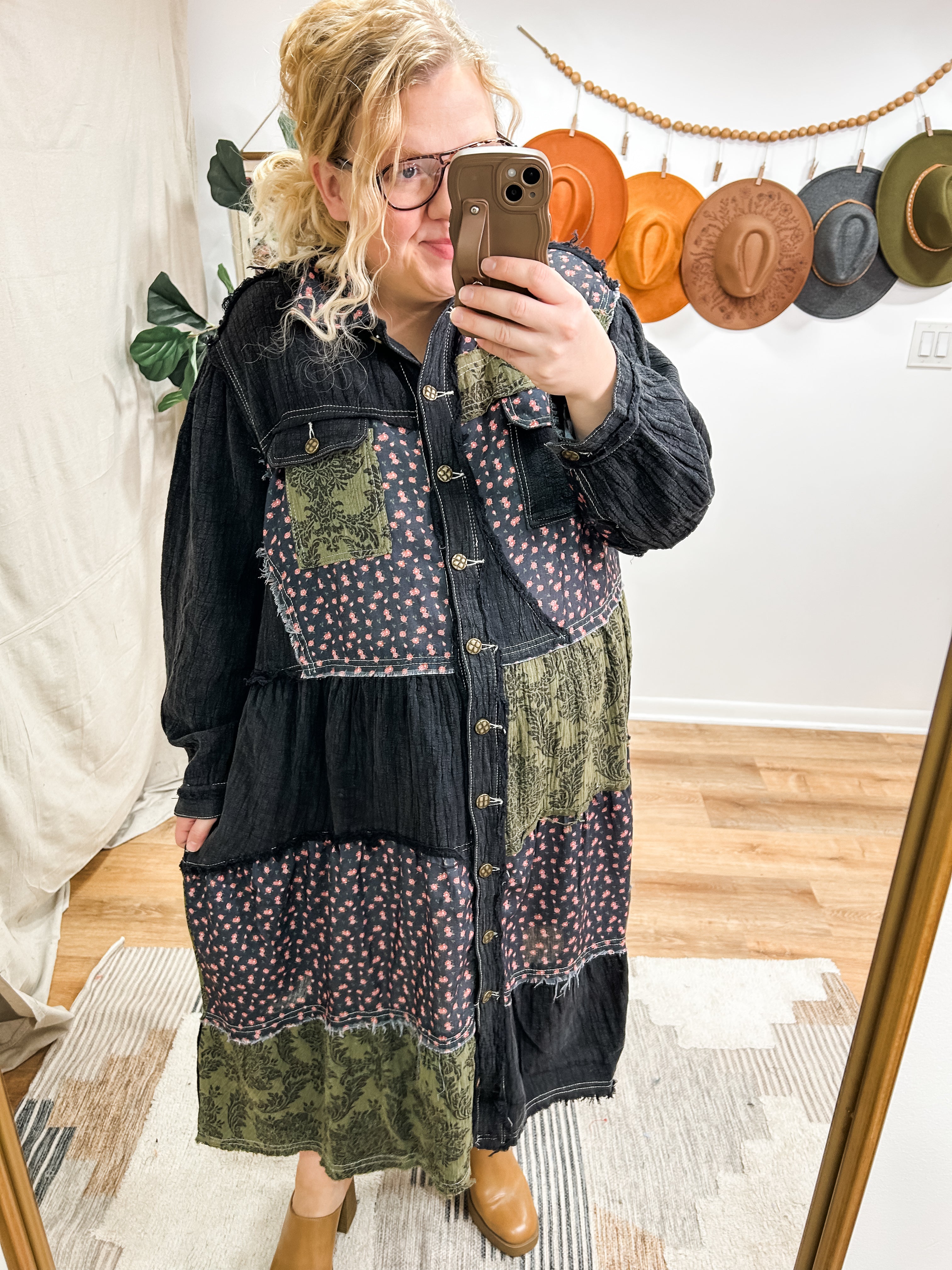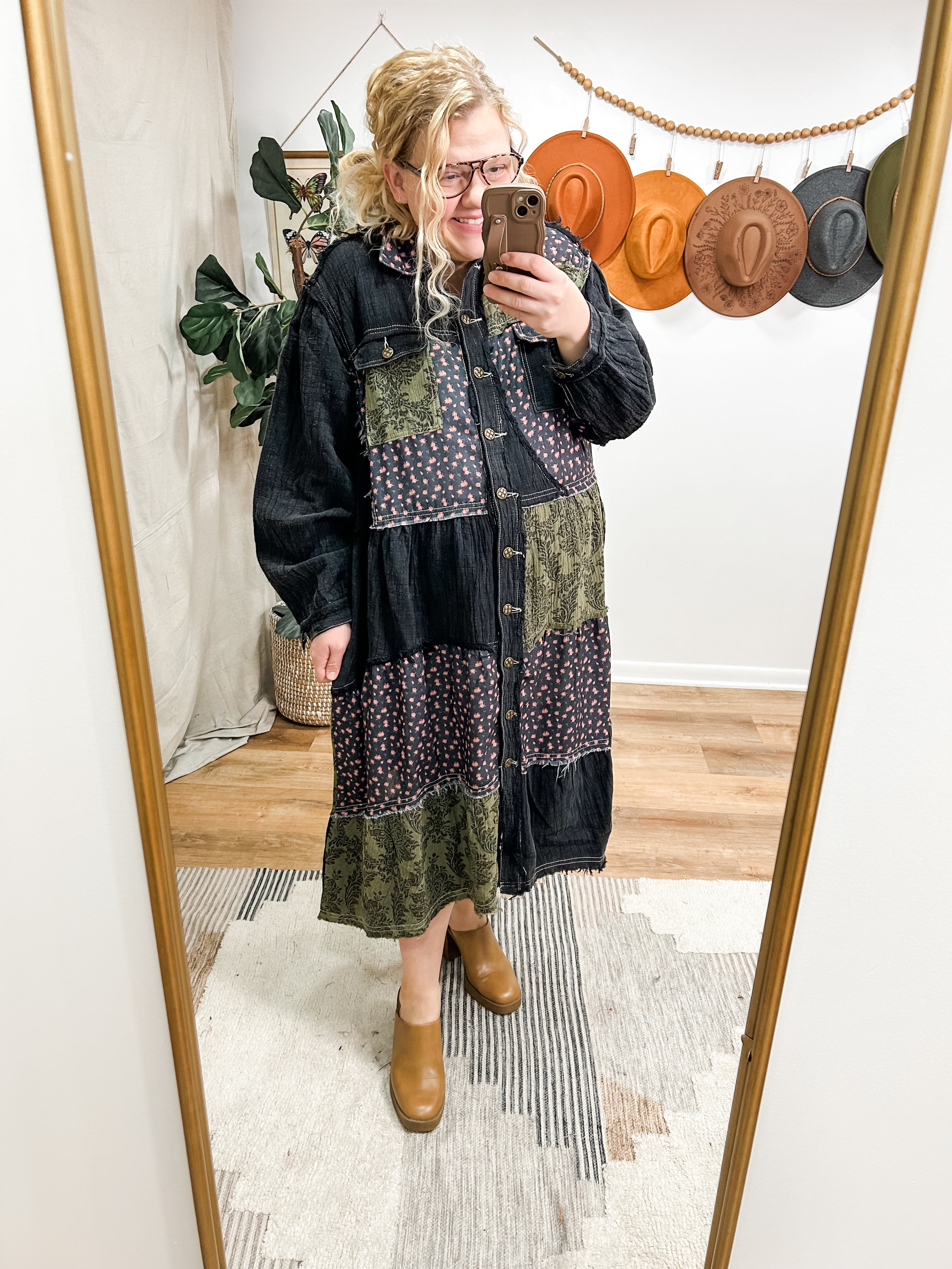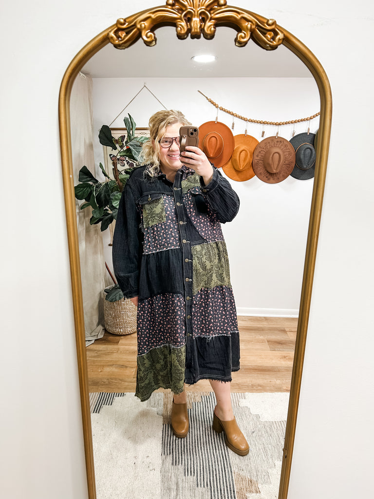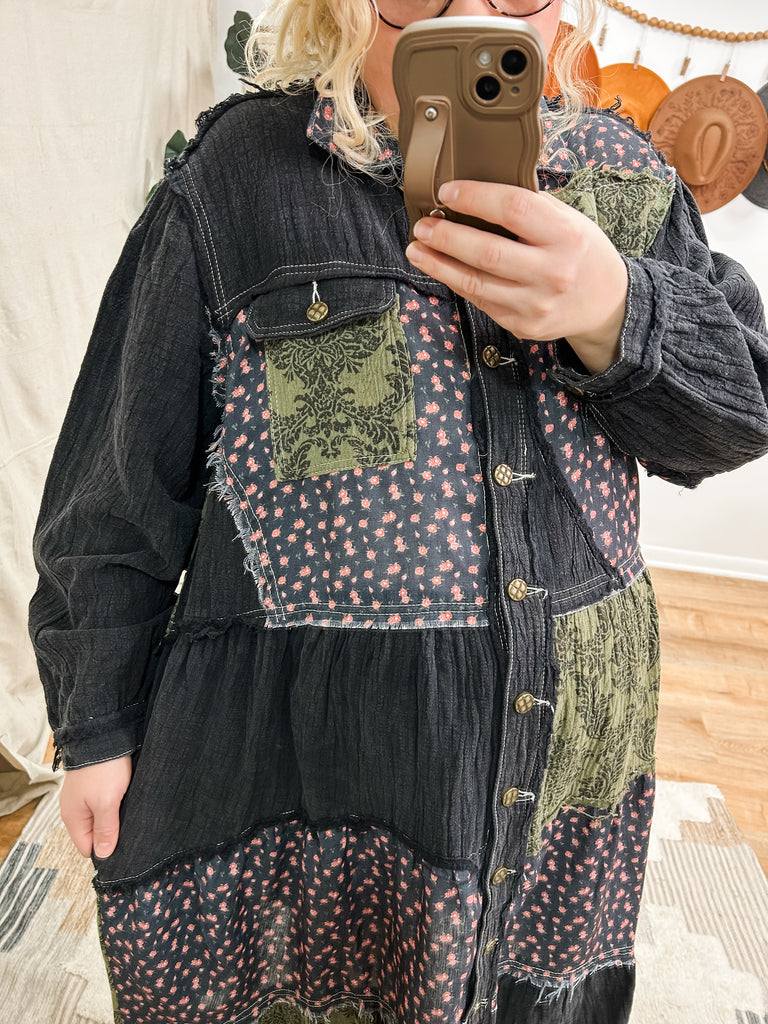 Size recommendations: Size down or go tts for an oversized look. It has functional buttons and can be worn open. The large will fit up to 1X/2X.