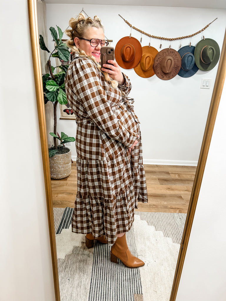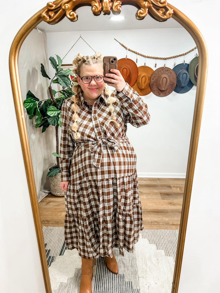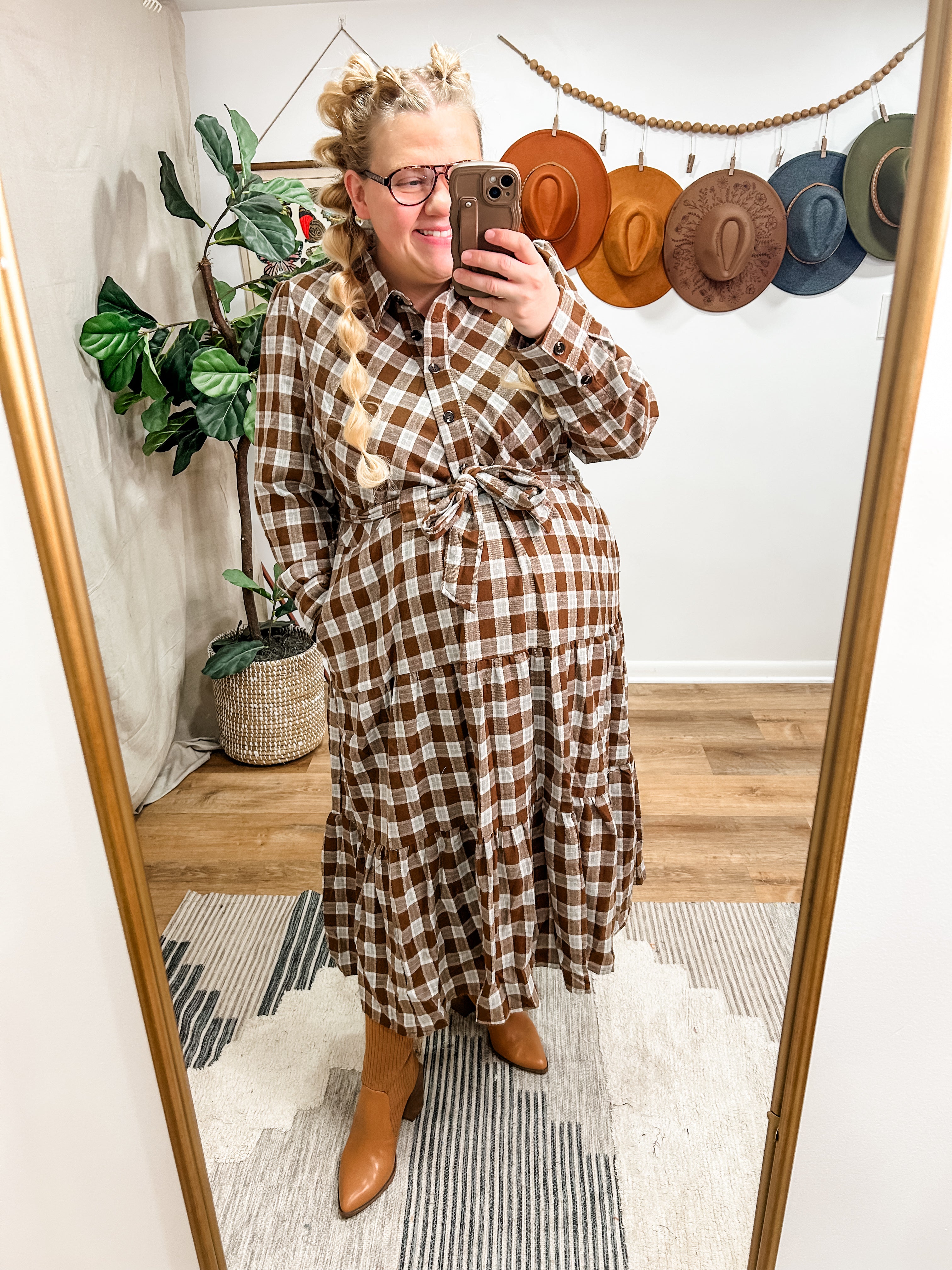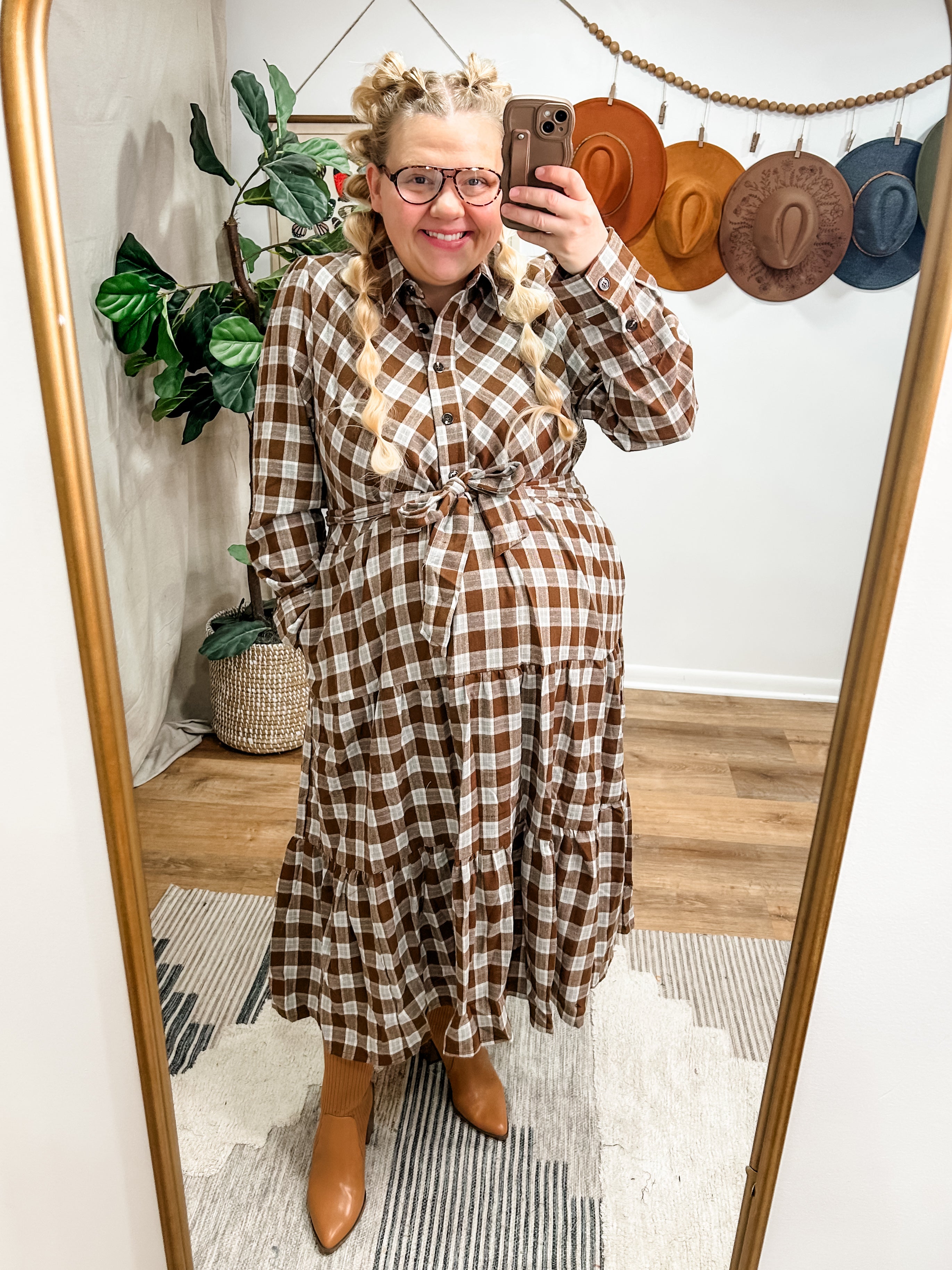 Size recommendations: true to size. This dress has functional buttons and it comes with a belt. It has pockets!