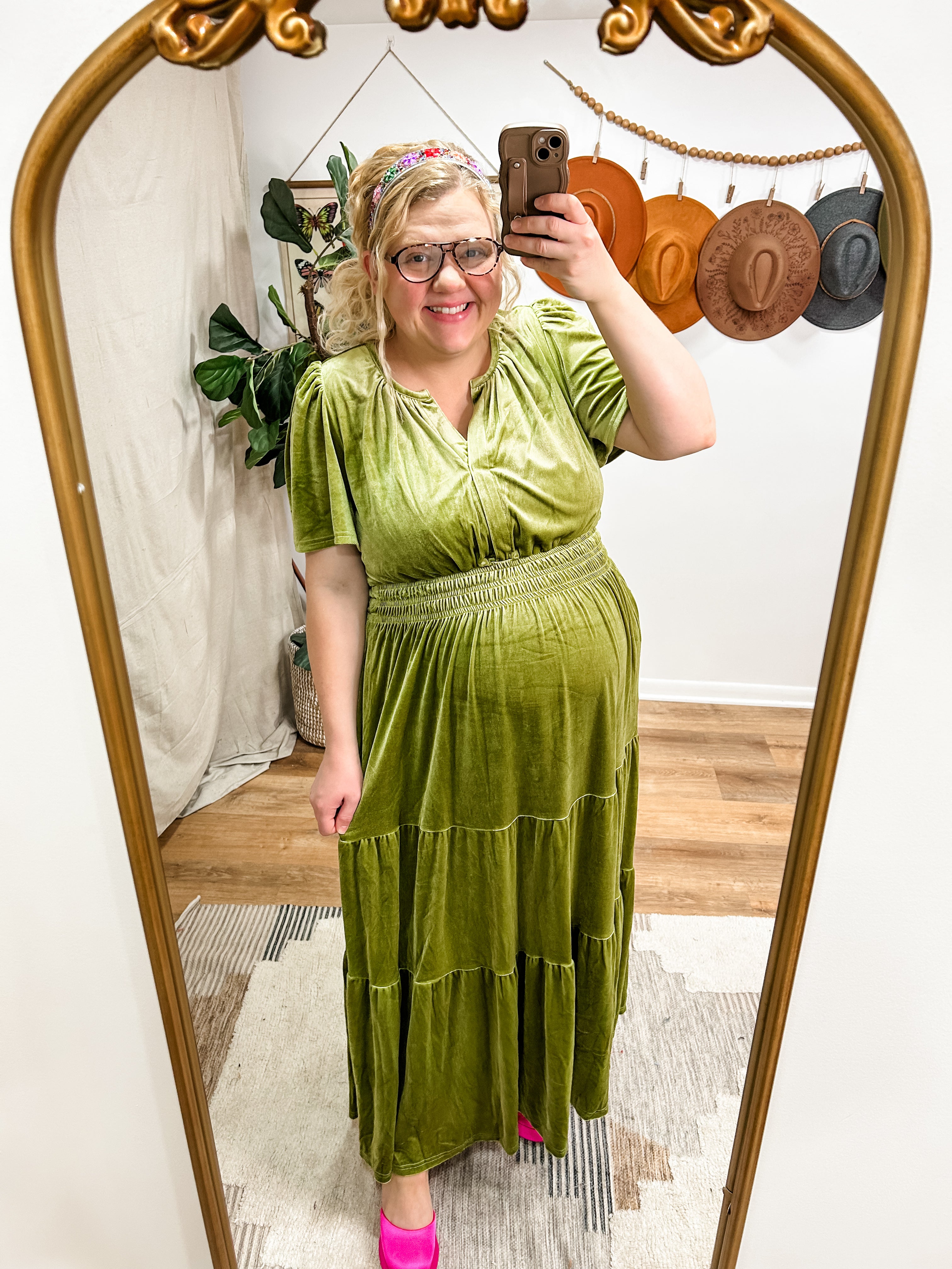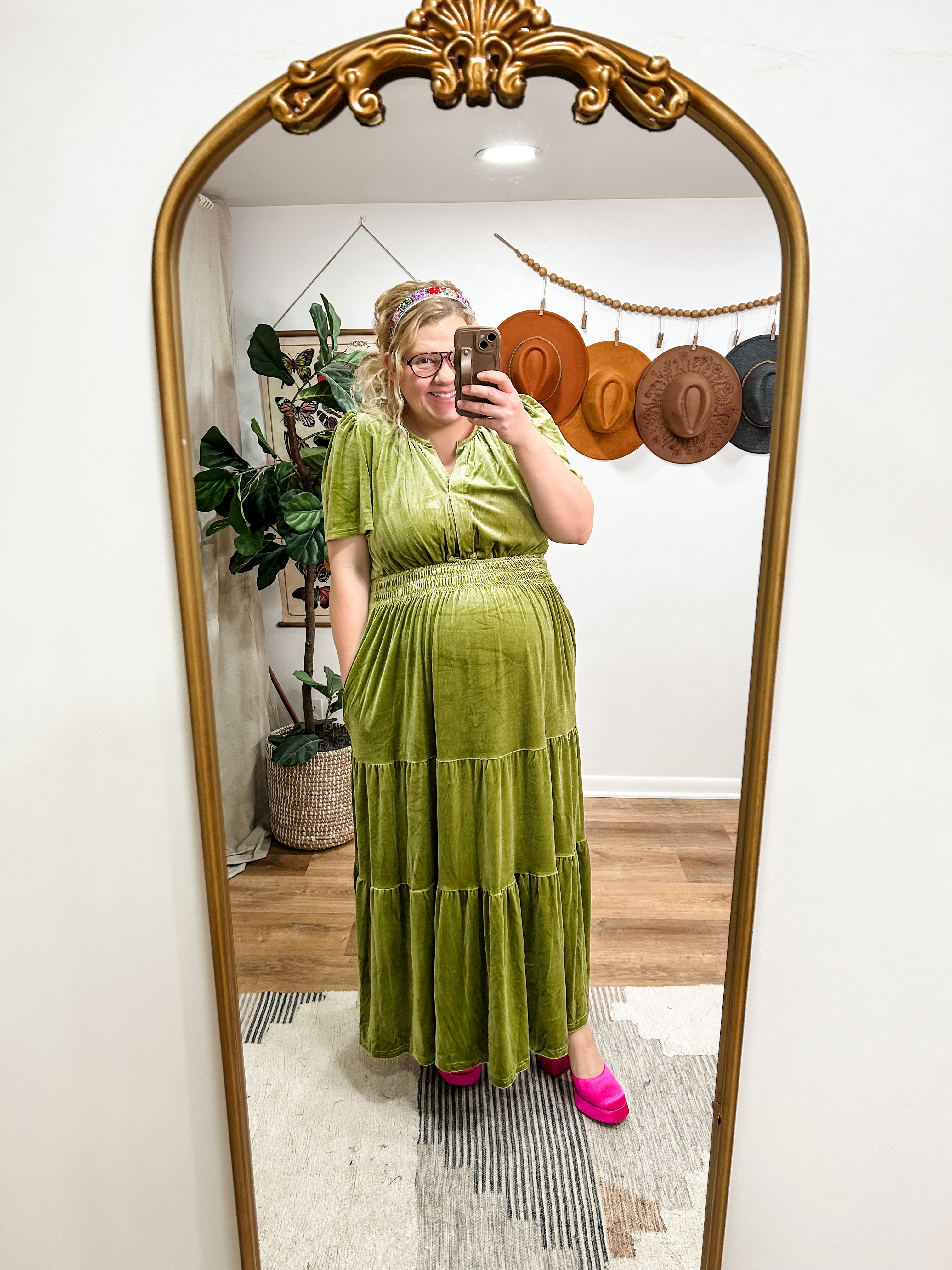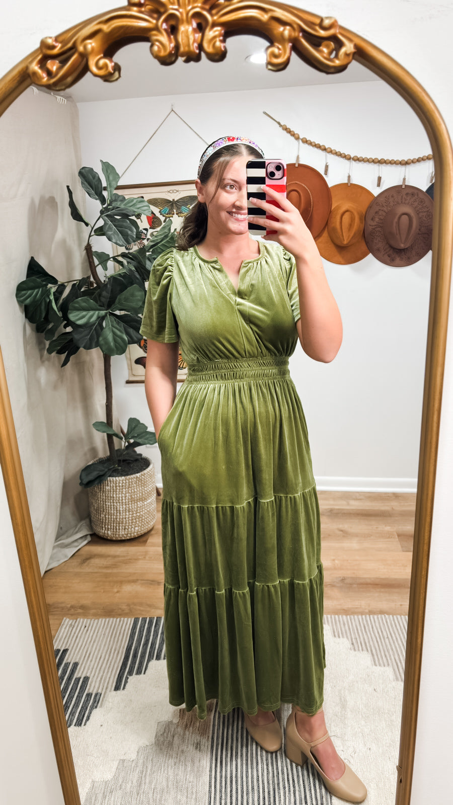 Size recommendations: true to size. Size up if between sizes. It has a smocked, elastic waistband and it has pockets.
