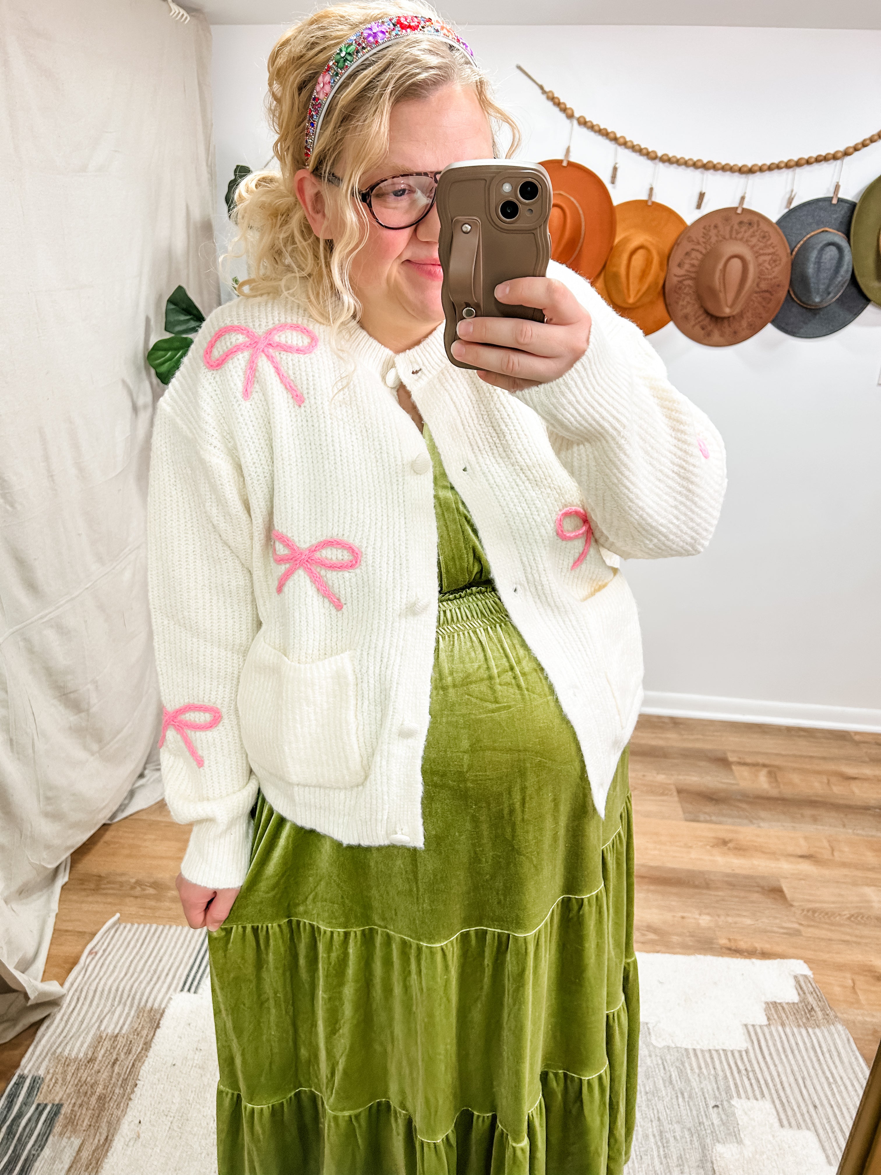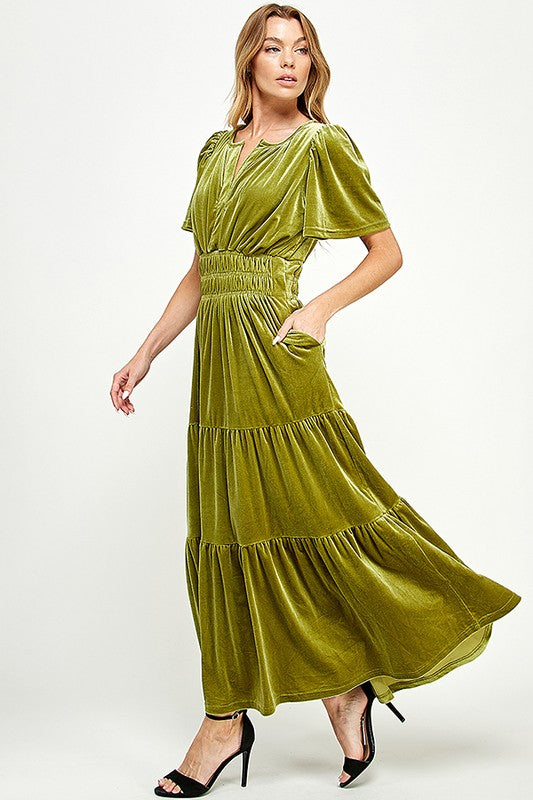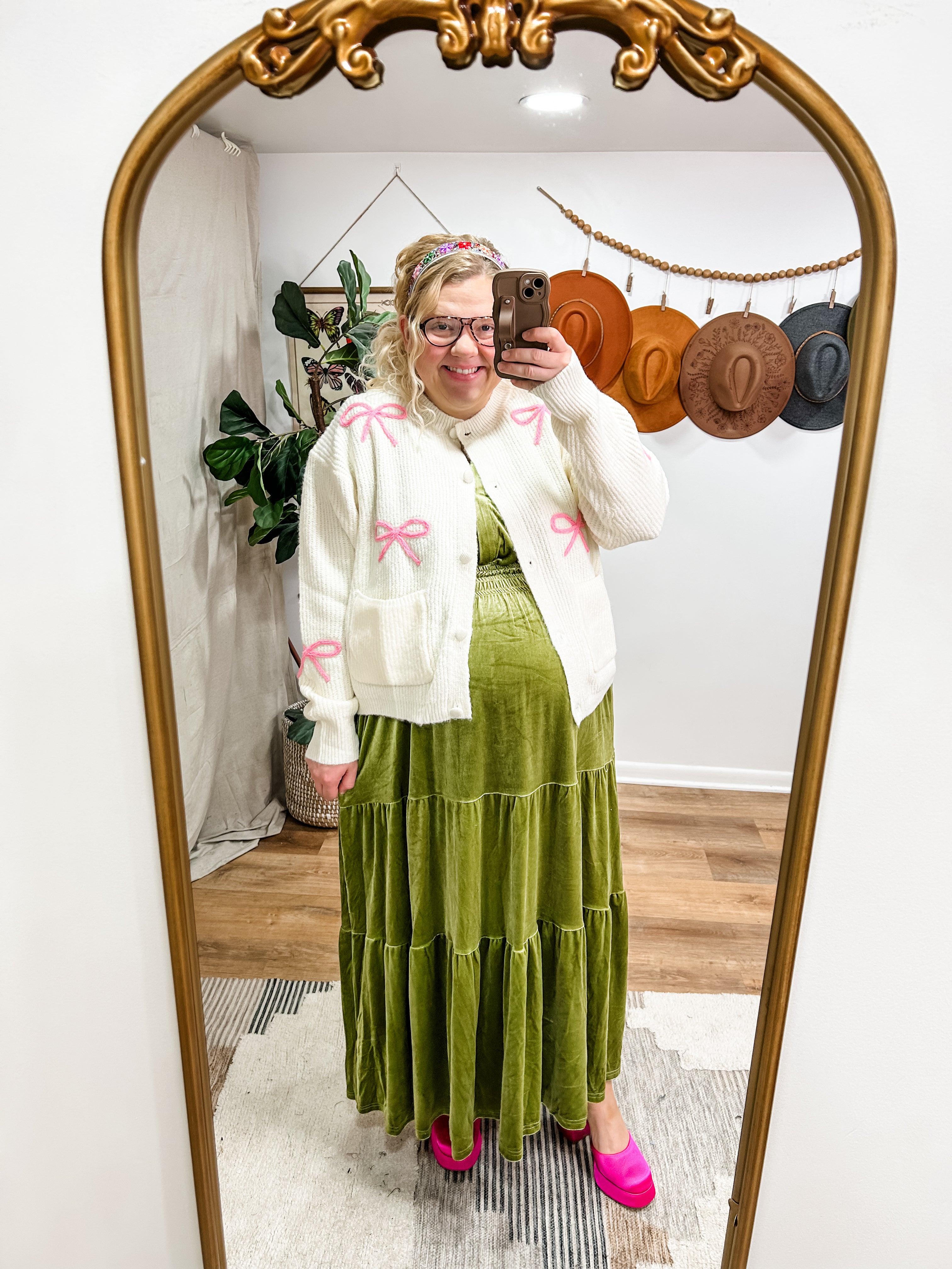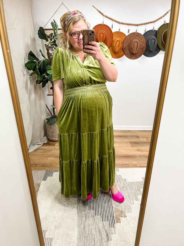 Size recommendations: true to size. Size up if between sizes. It has a smocked, elastic waistband and it has pockets.