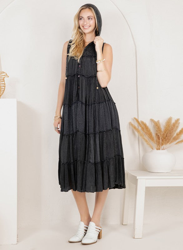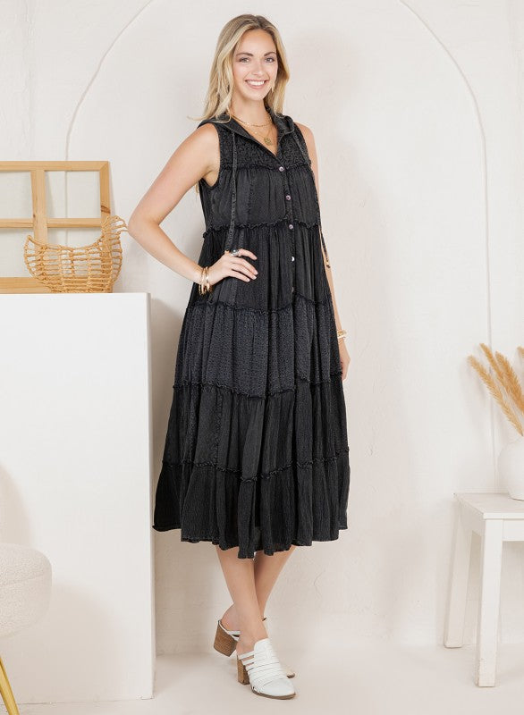 Celeste Hoodie Duster Dress in Black