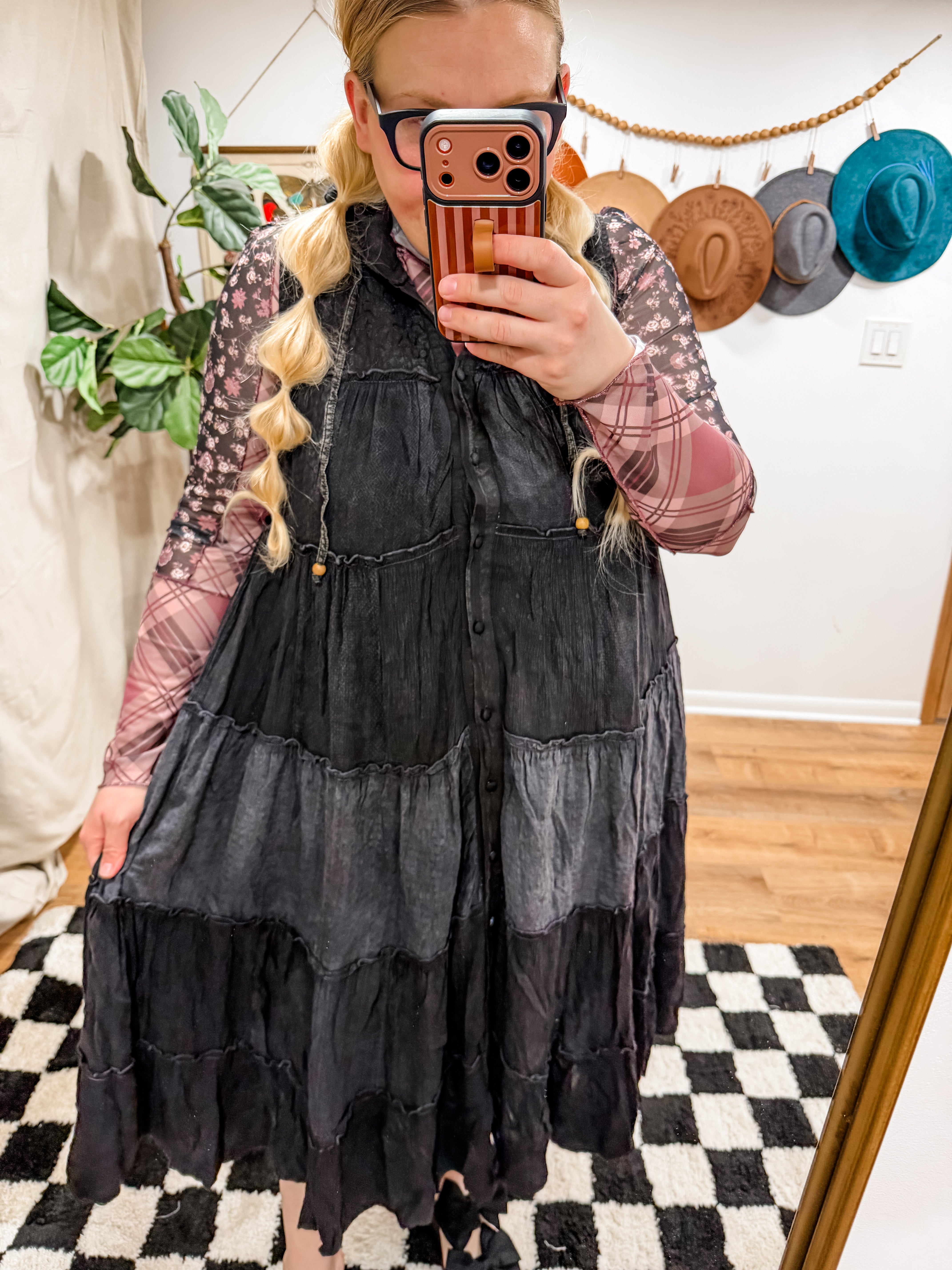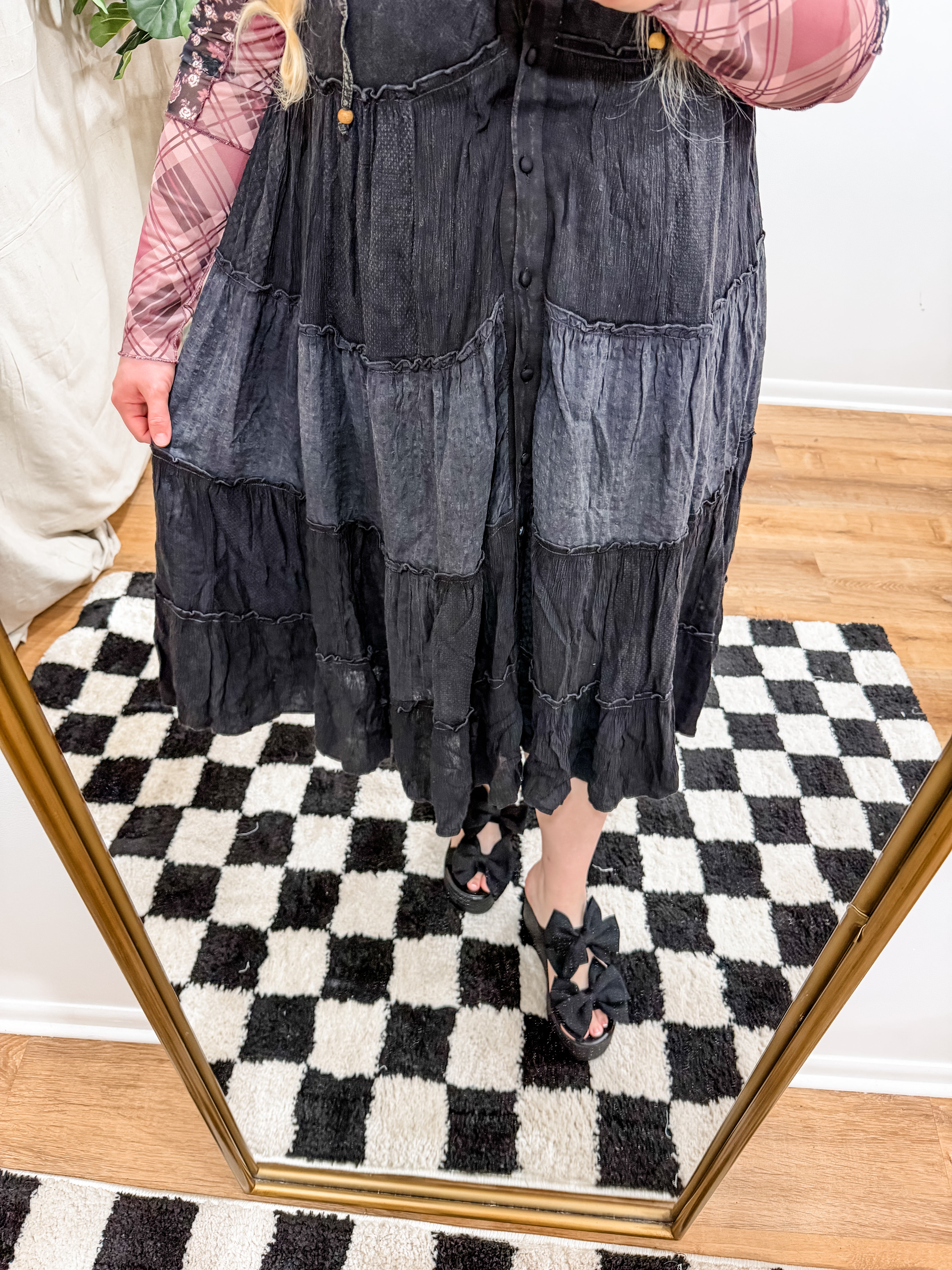 Size recommendations: True to size. Size up if between sizes. (The lining makes this dress a little smaller. The lining can be cut out. If it wasn’t for the lining it would fit oversized. Kayla wears the XL) This dress has functional buttons up the front. It has a hood as well.