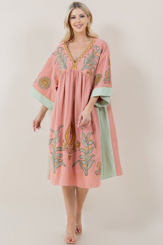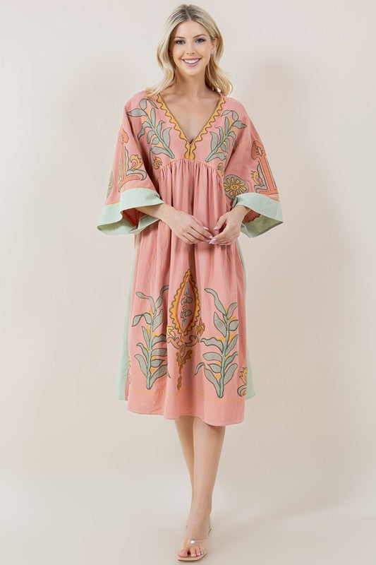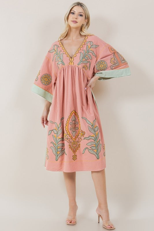 Imogen Embroidered Dress in Pink