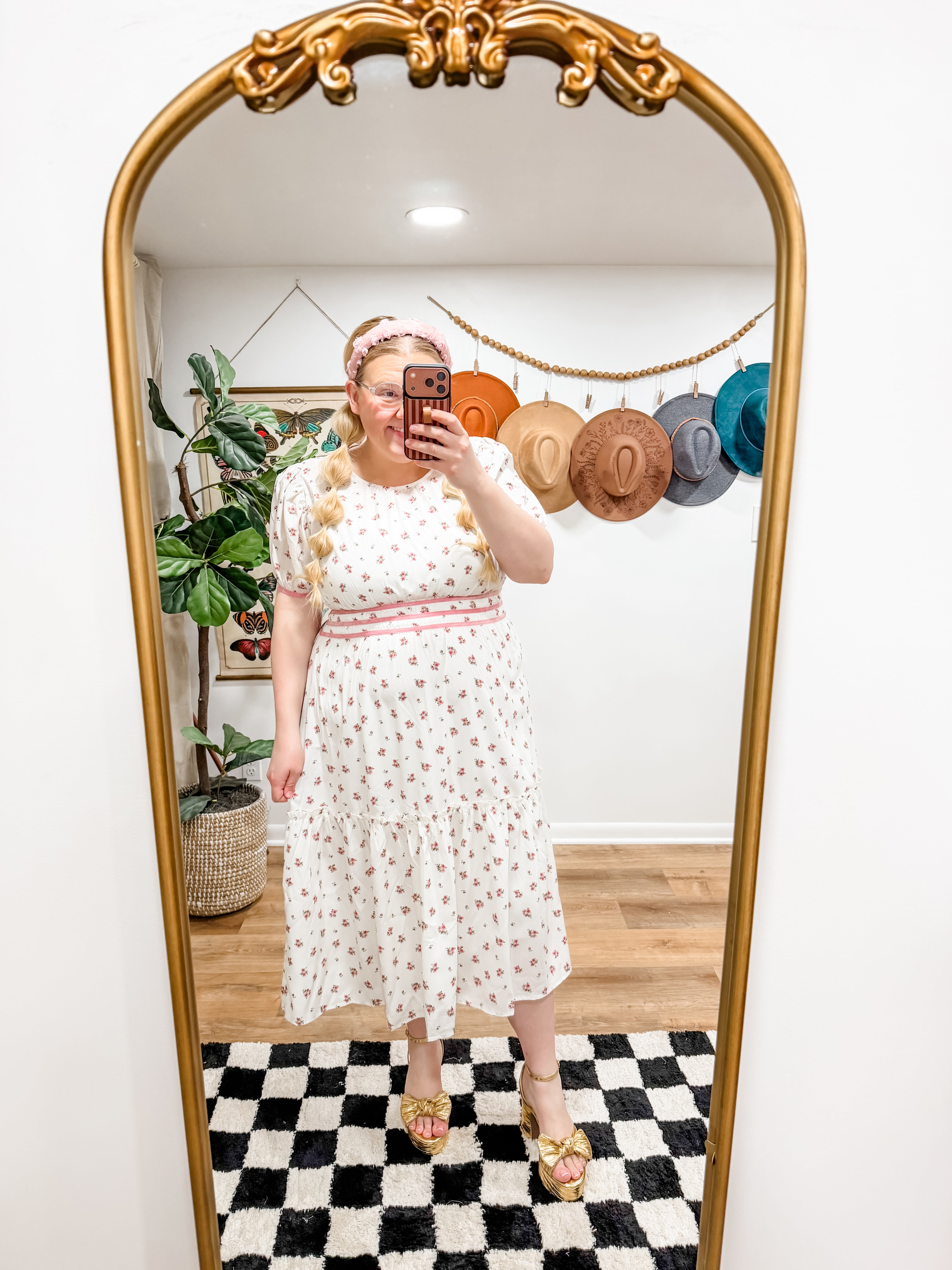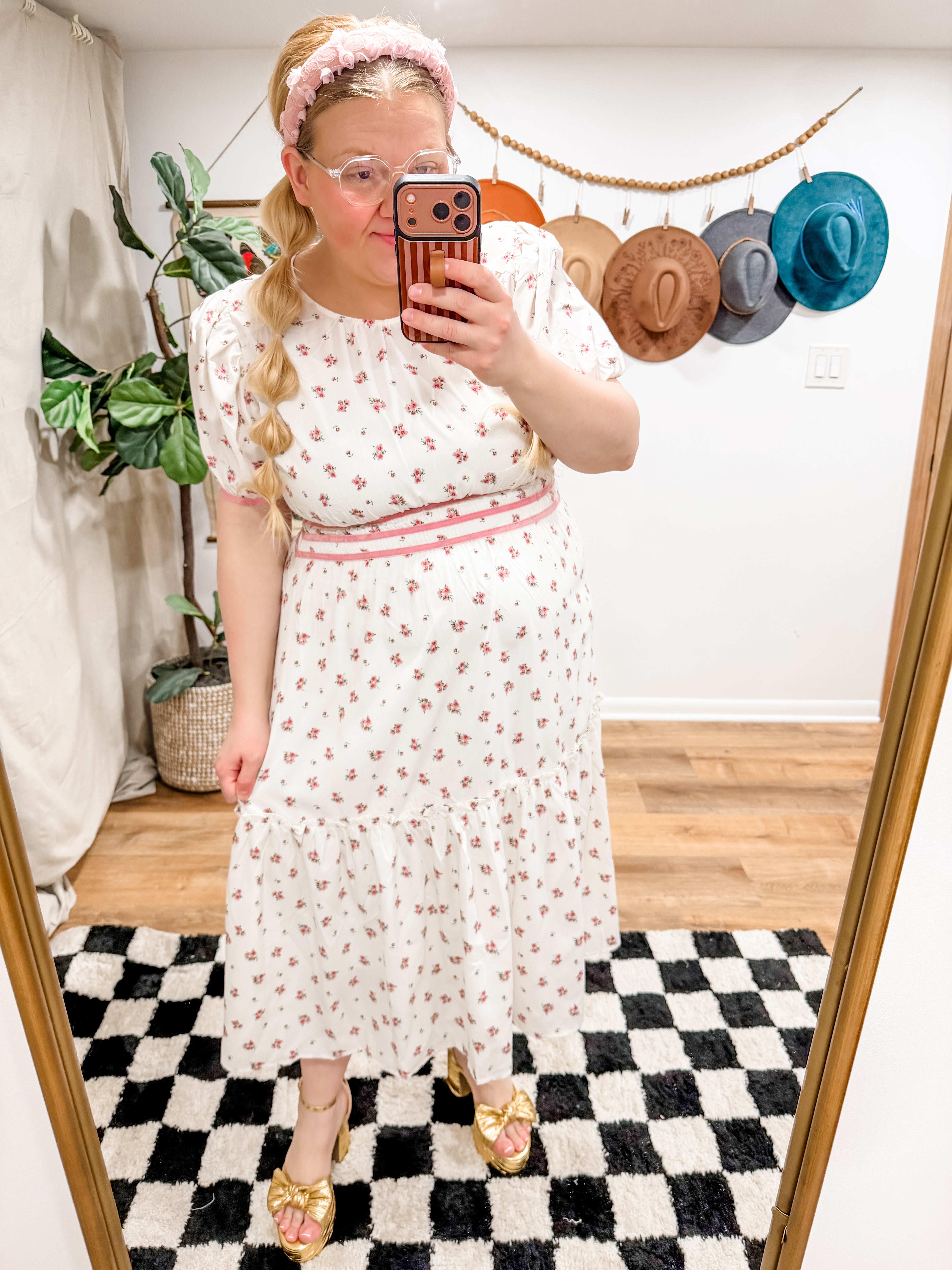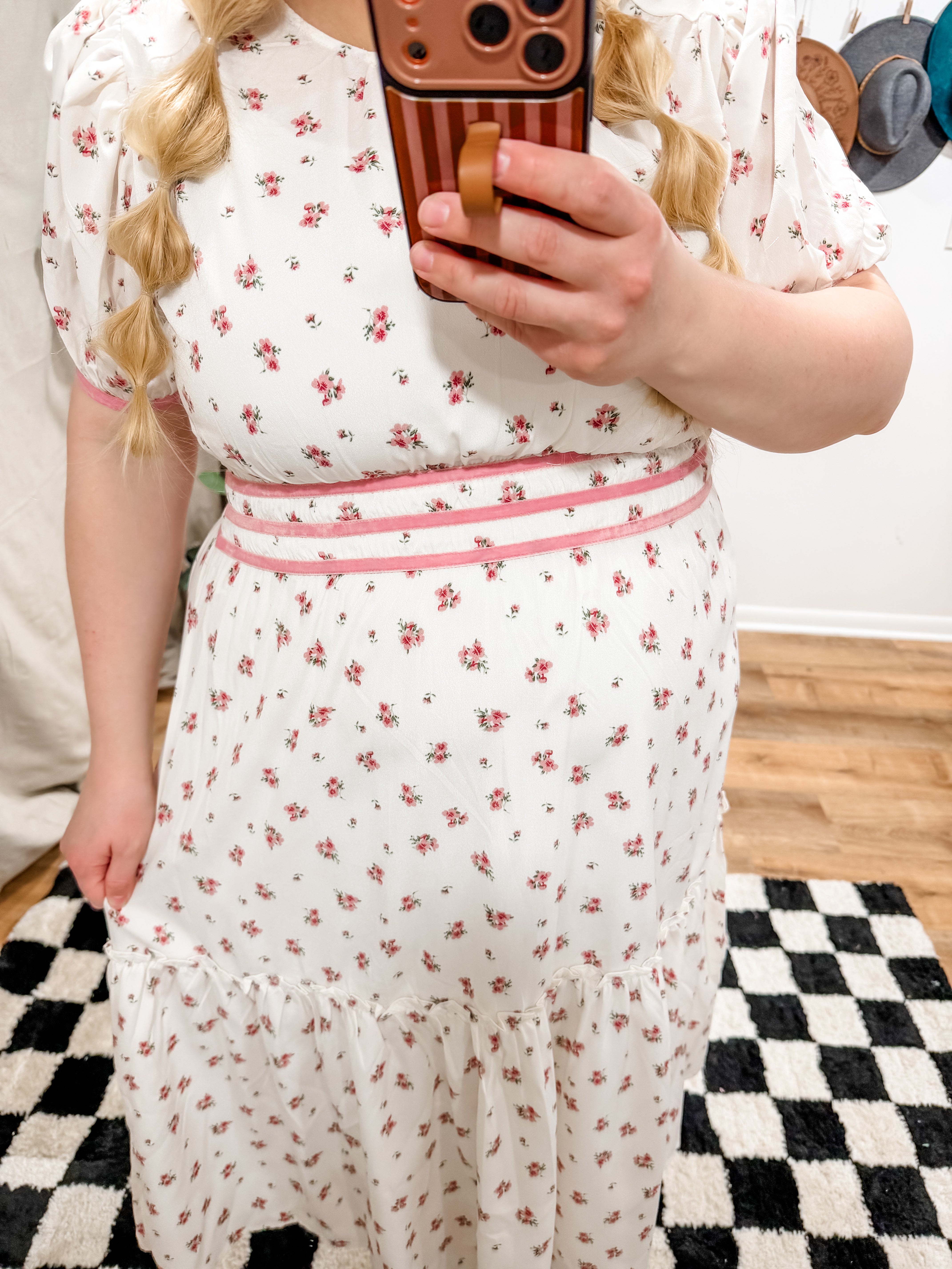 Size recommendations: True to size. This dress has a stretchy elastic waistband.