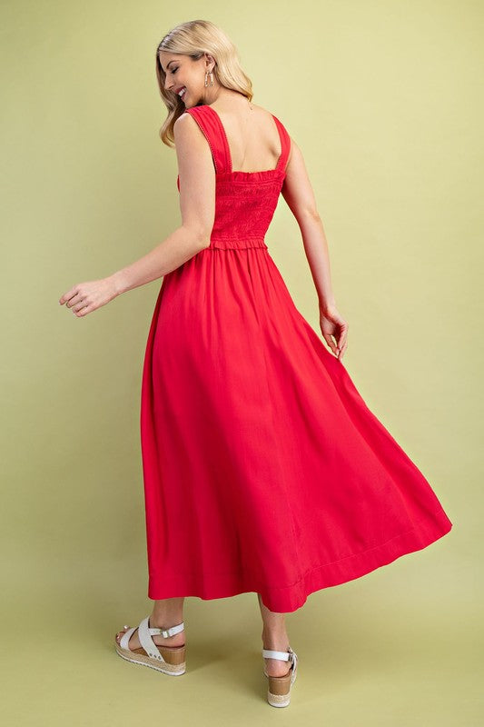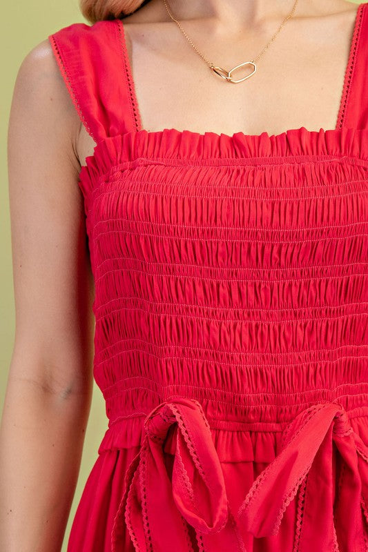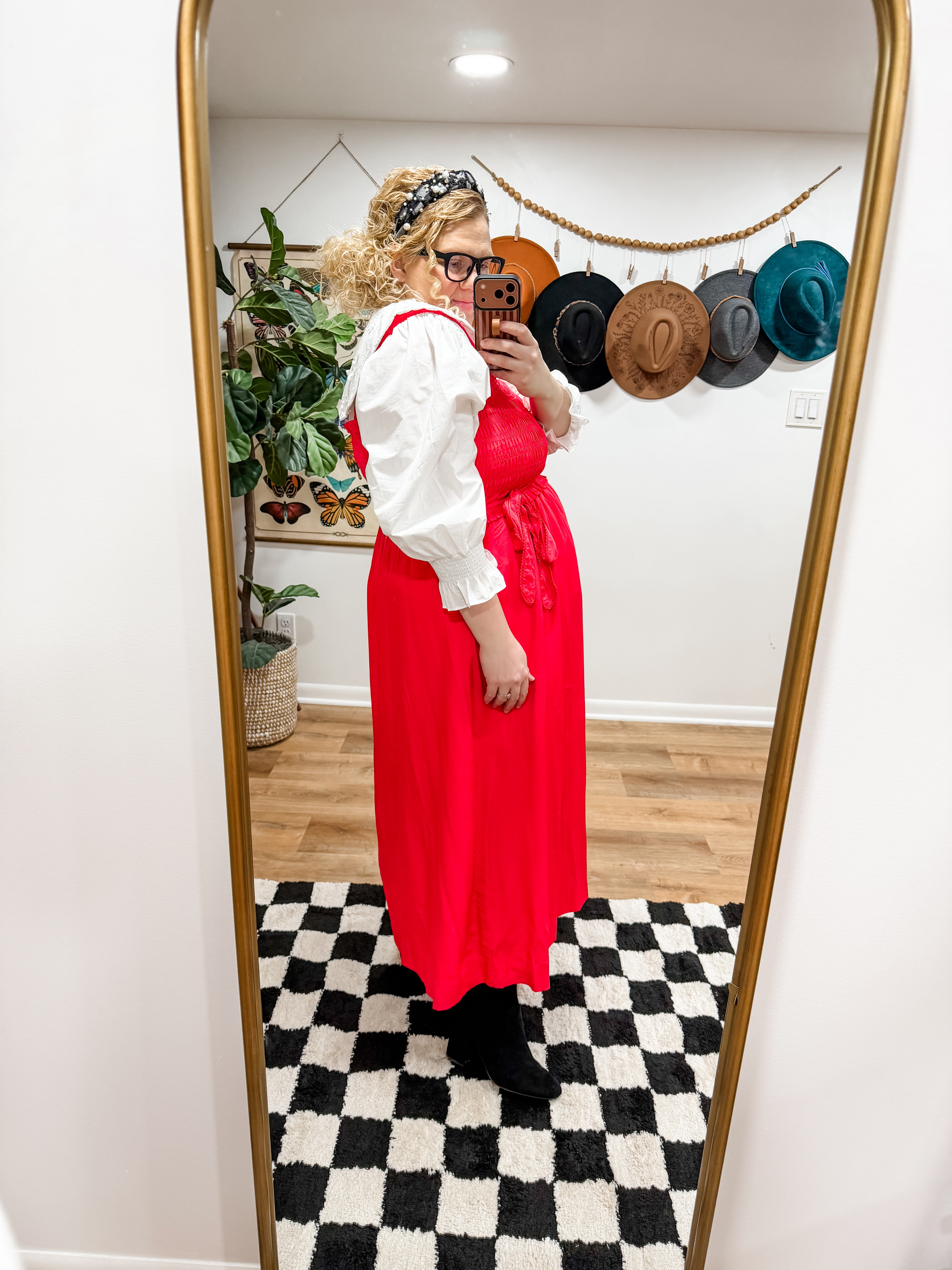 Size recommendations: True to size. This dress has a stretchy smocked top.