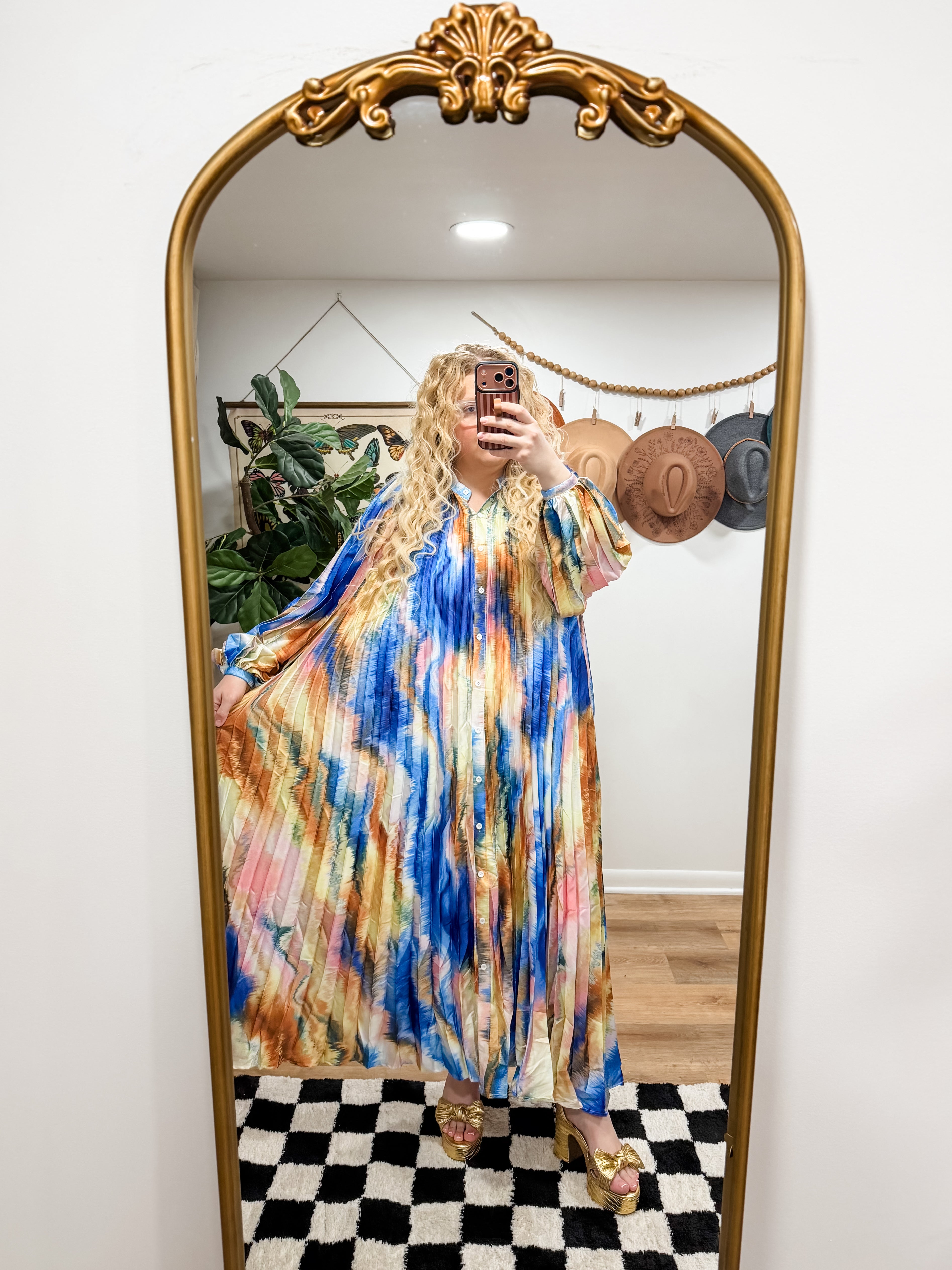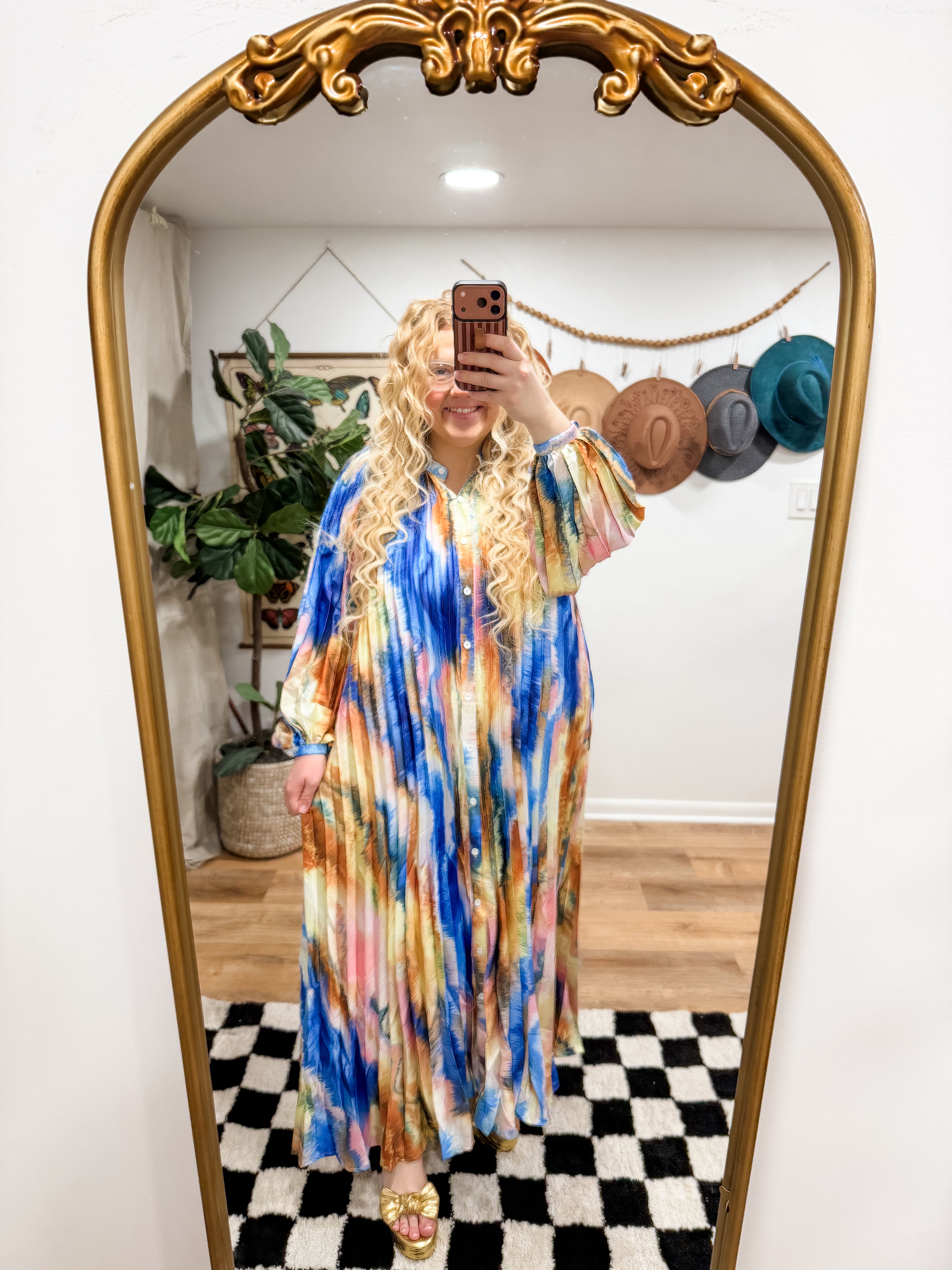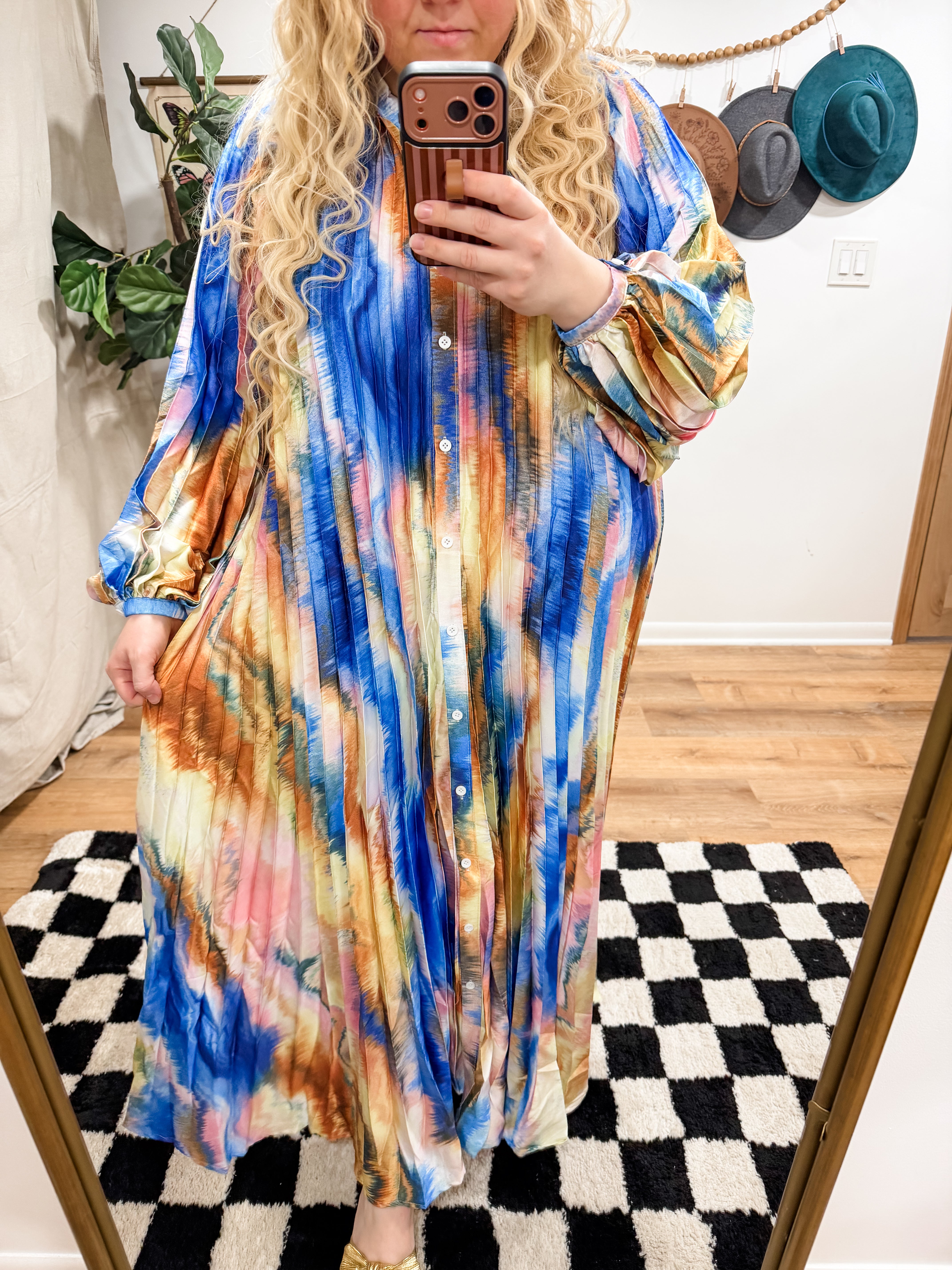 This dress is one size. Fits M-3XL best. It has functional buttons.