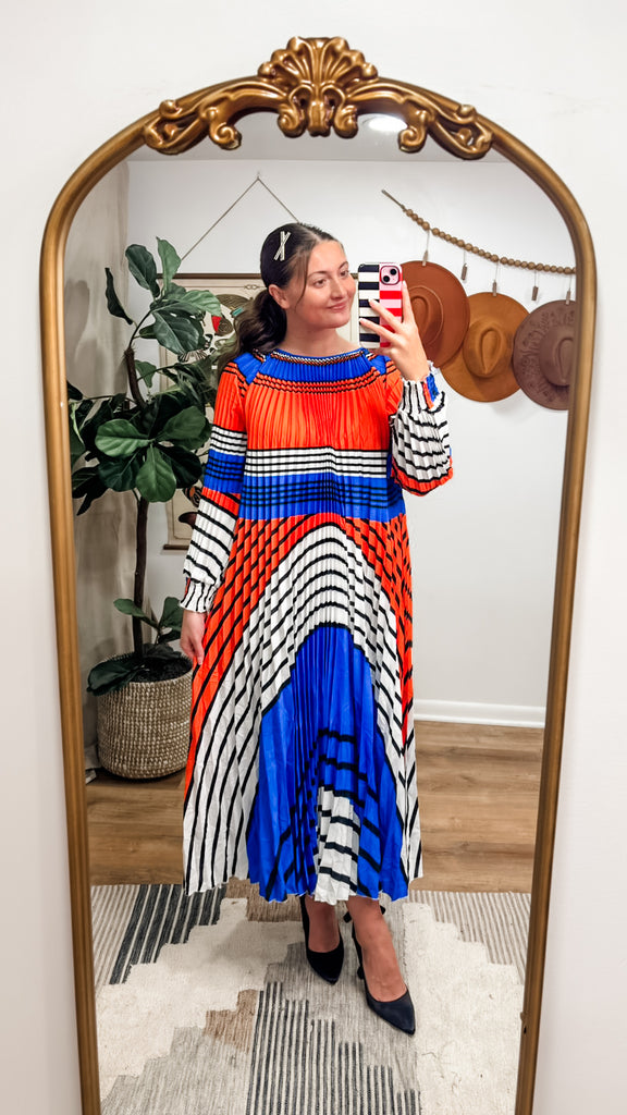 Dreamy Little Thing Dress in Blue & Orange Stripes