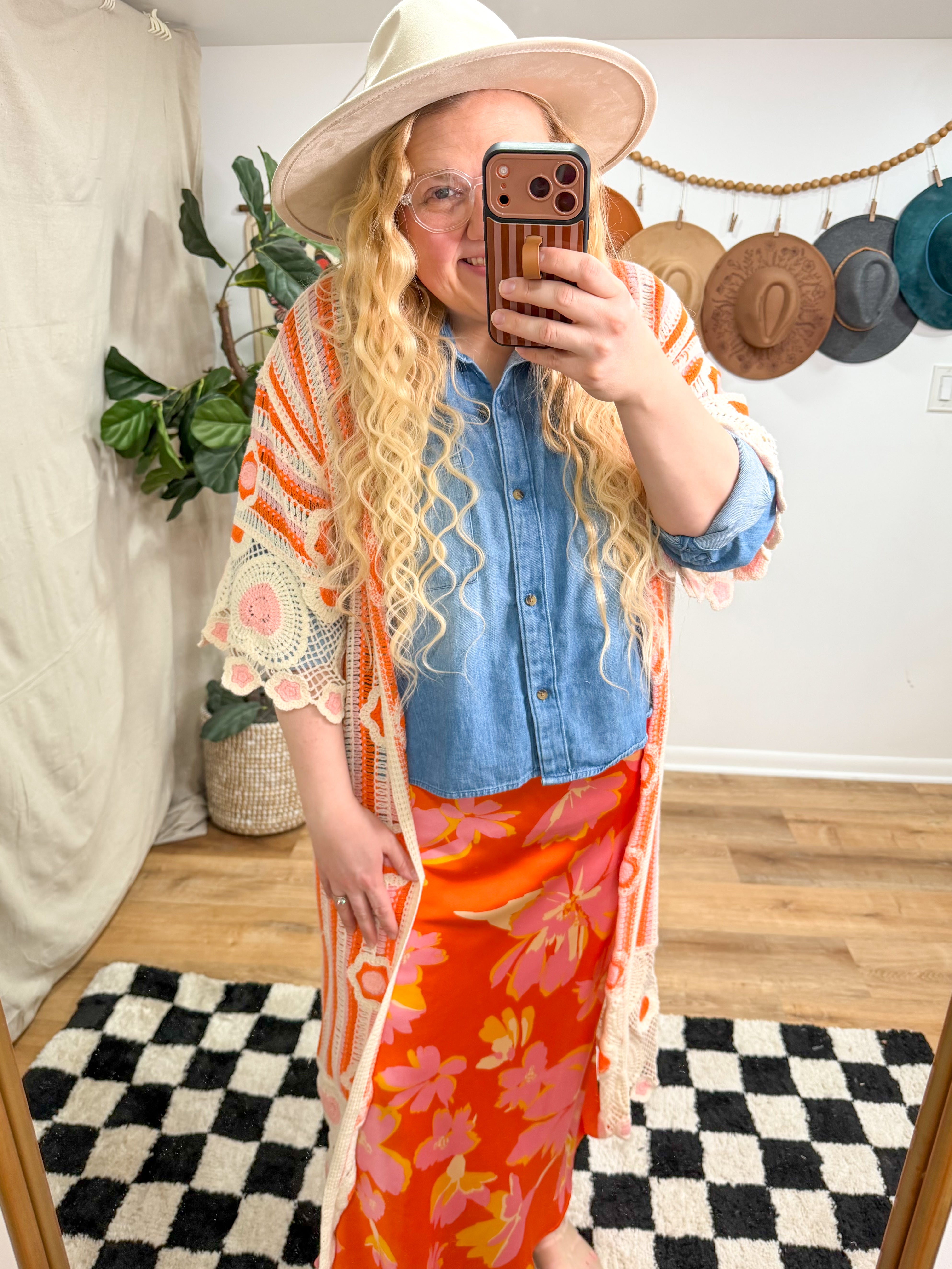 Nettie Crochet Cardigan in Orange