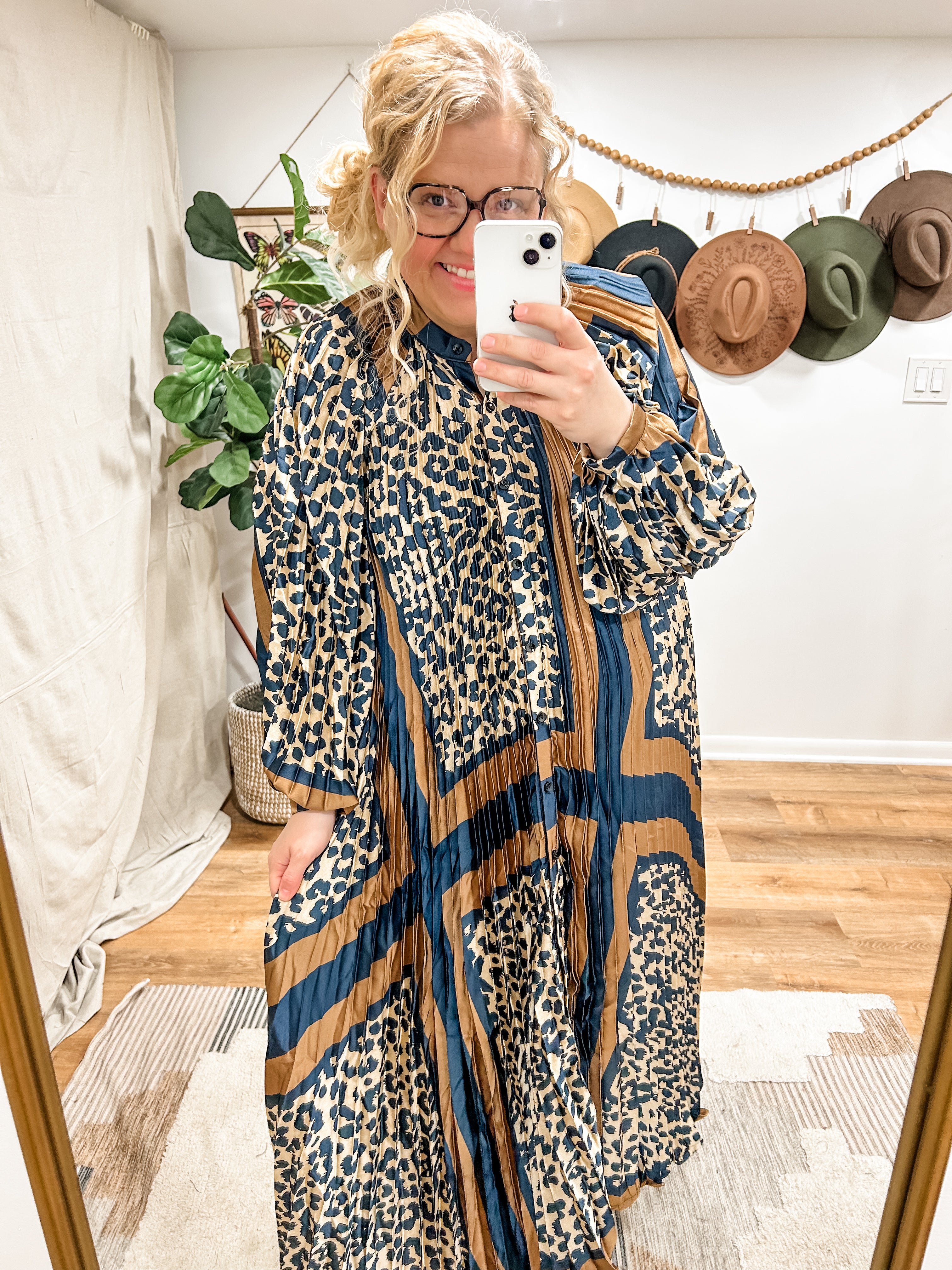 This dress is one size. Fits M-3XL best. It has functional buttons.