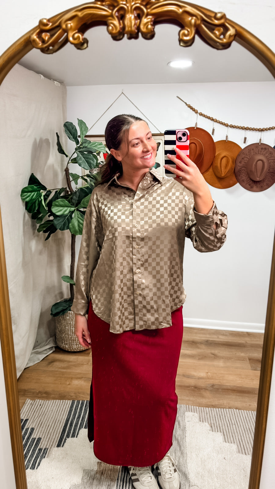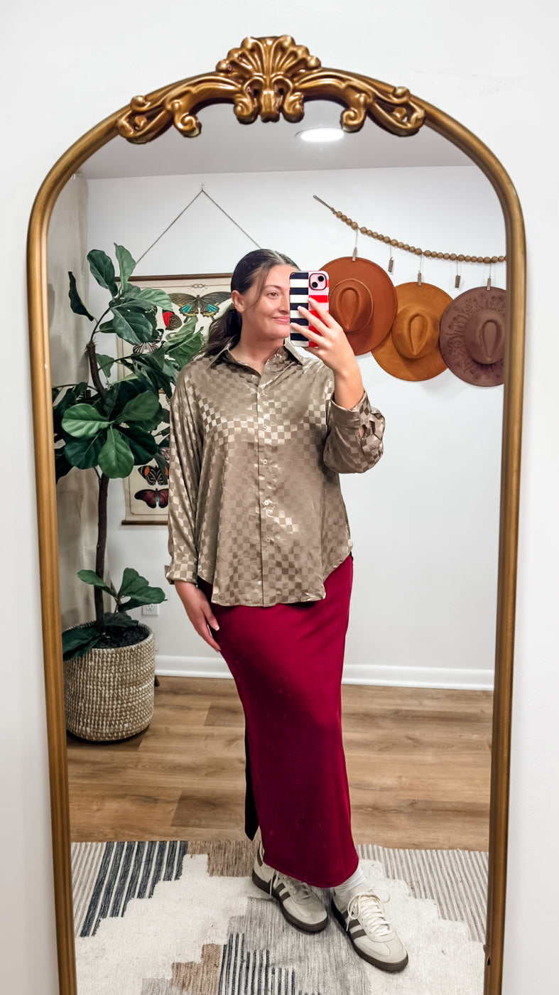 Size recommendations: true to size. This top has functional buttons and is perfect for layering.