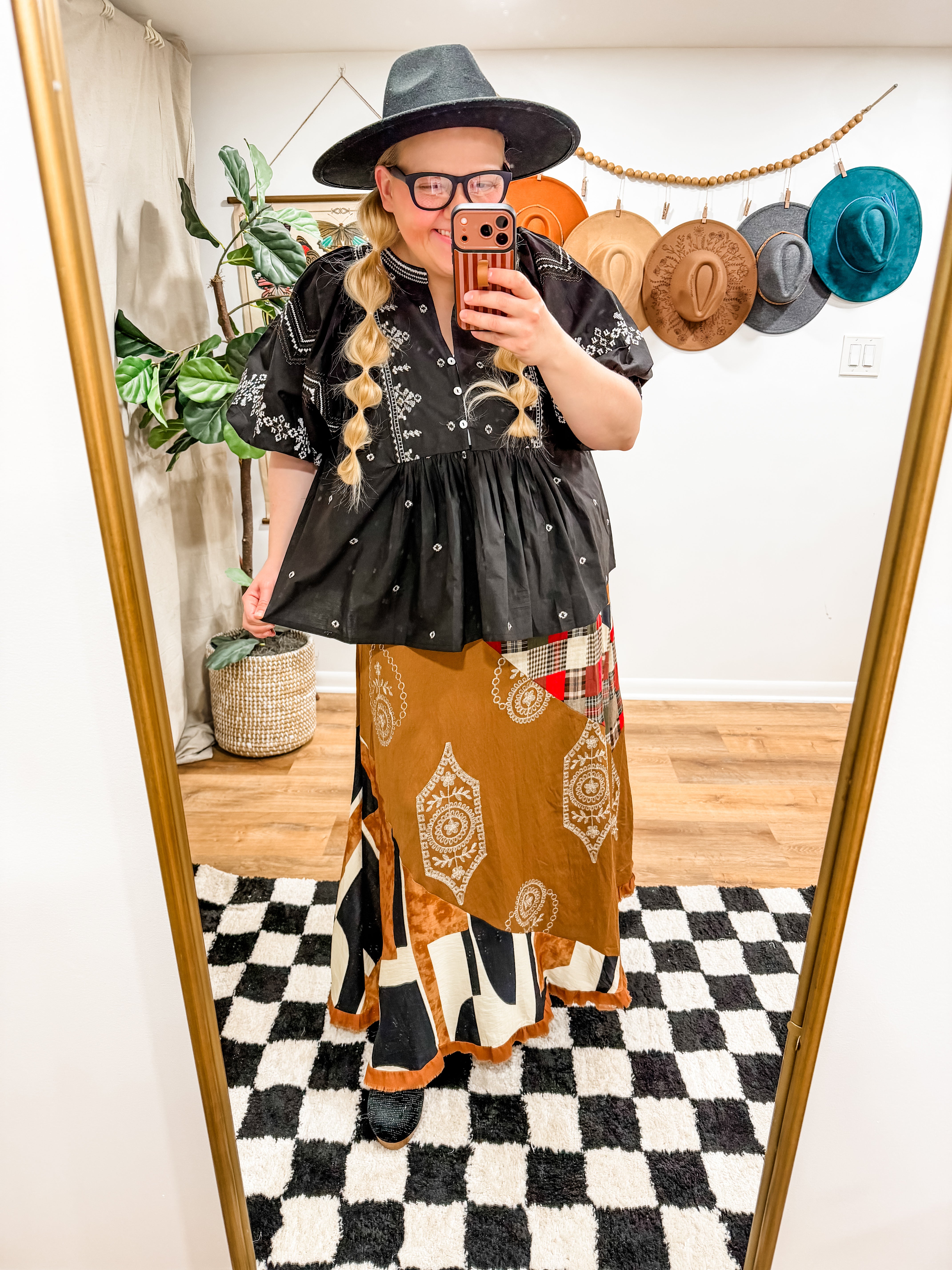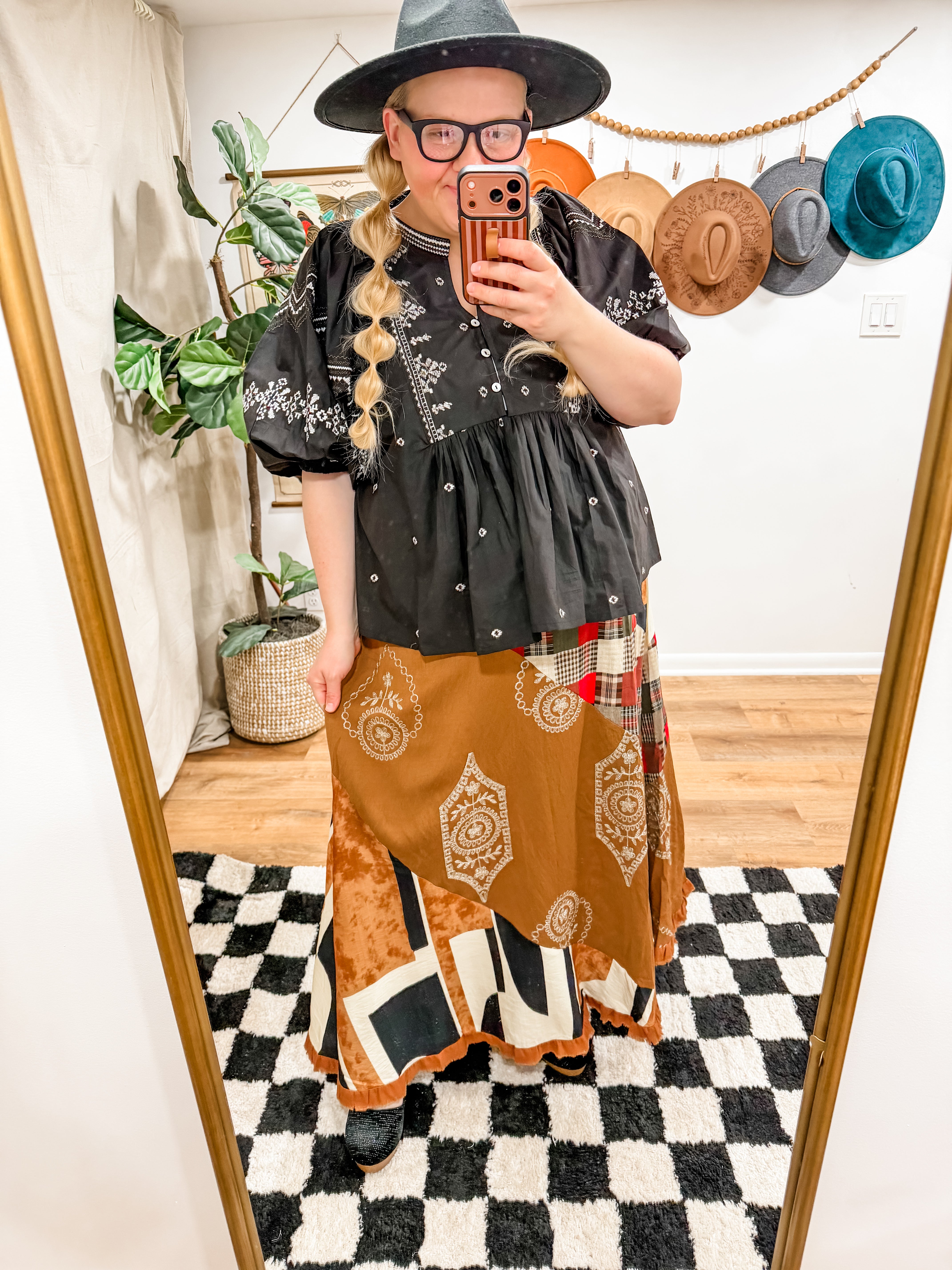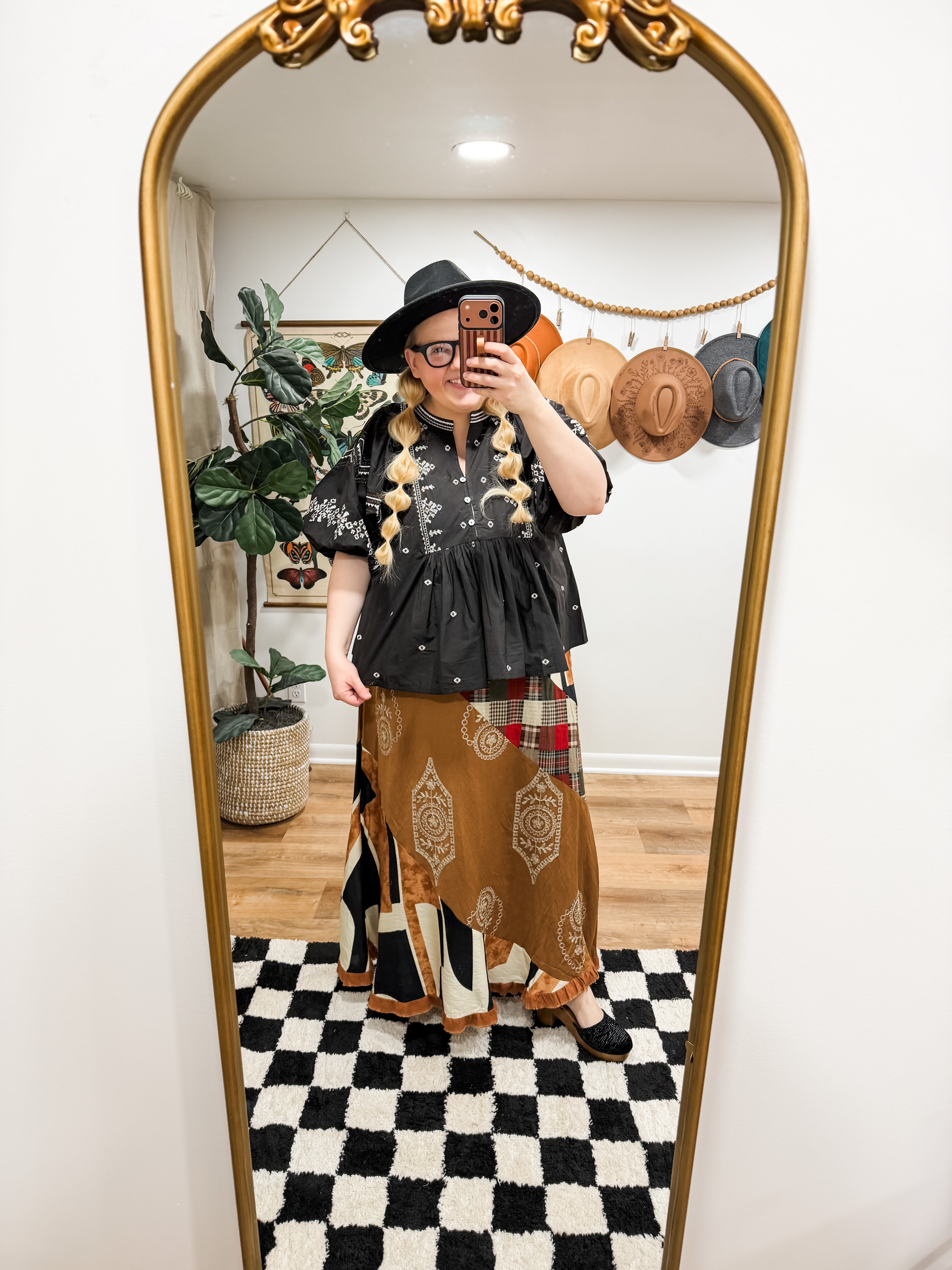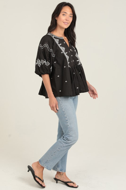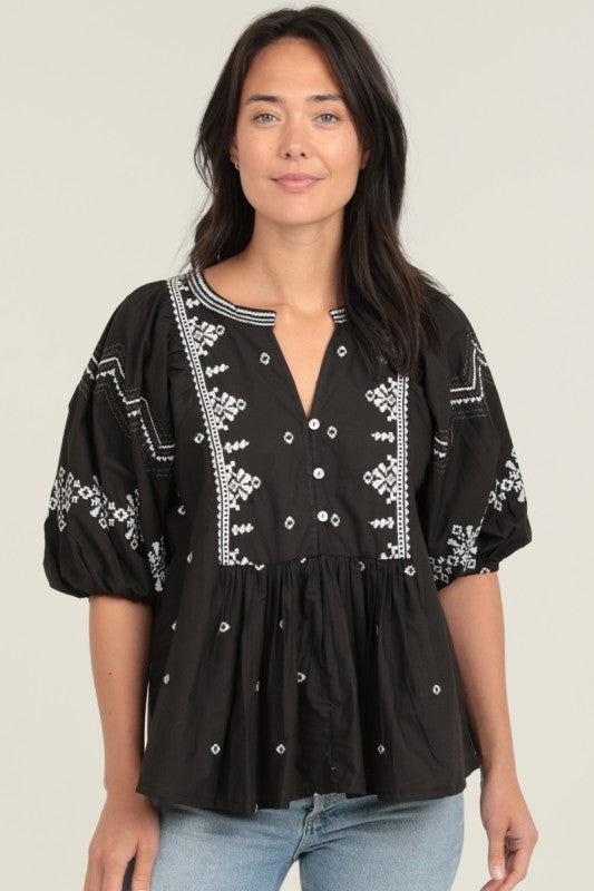 Size recommendations: true to size. Size down if between sizes. This top has functional loop buttons and it is embroidered.