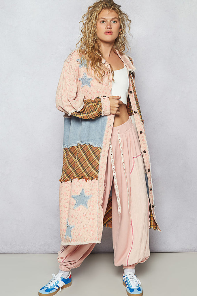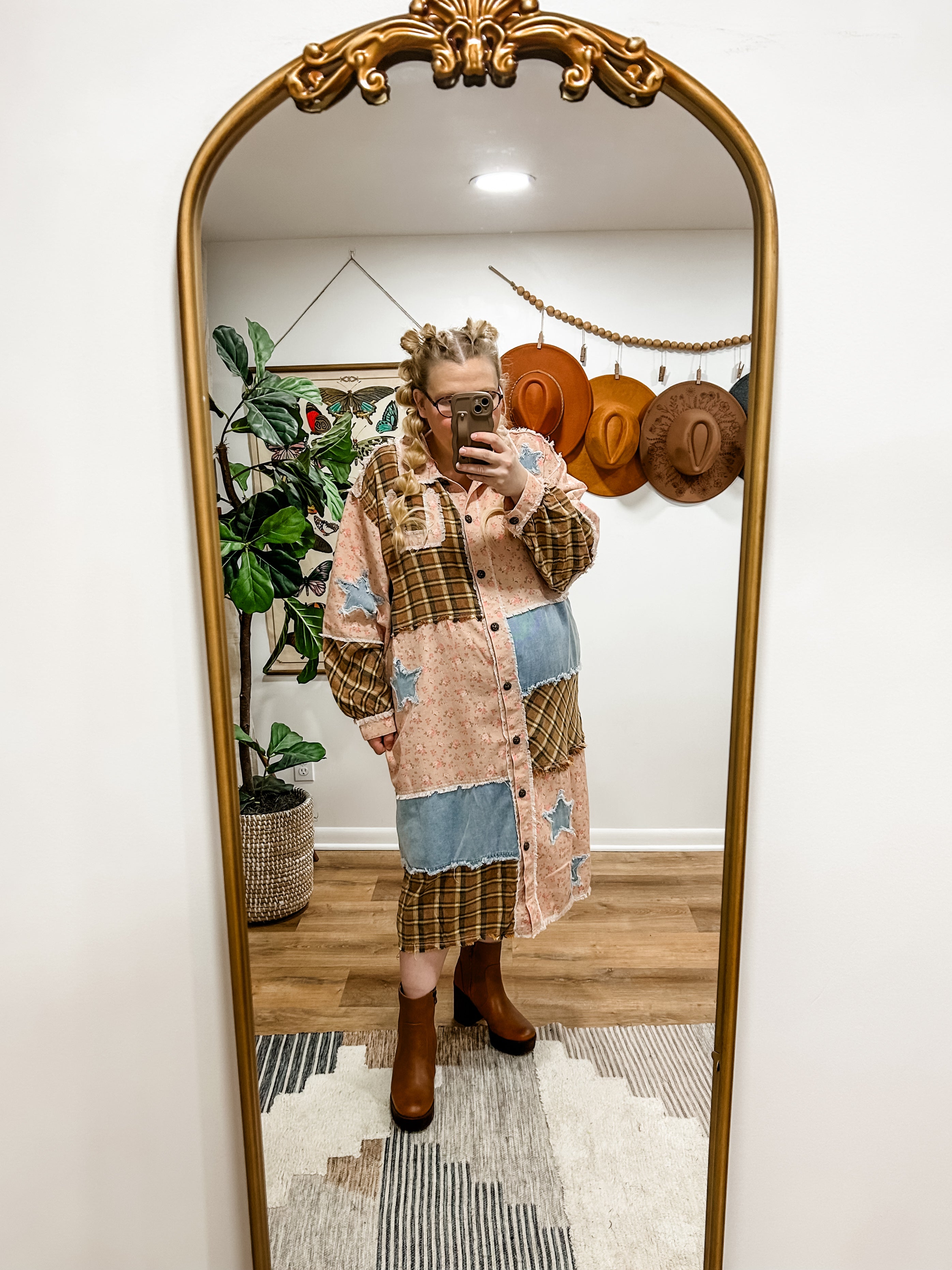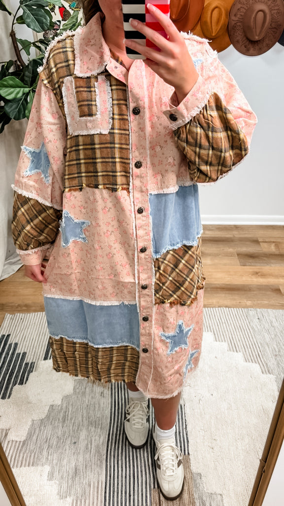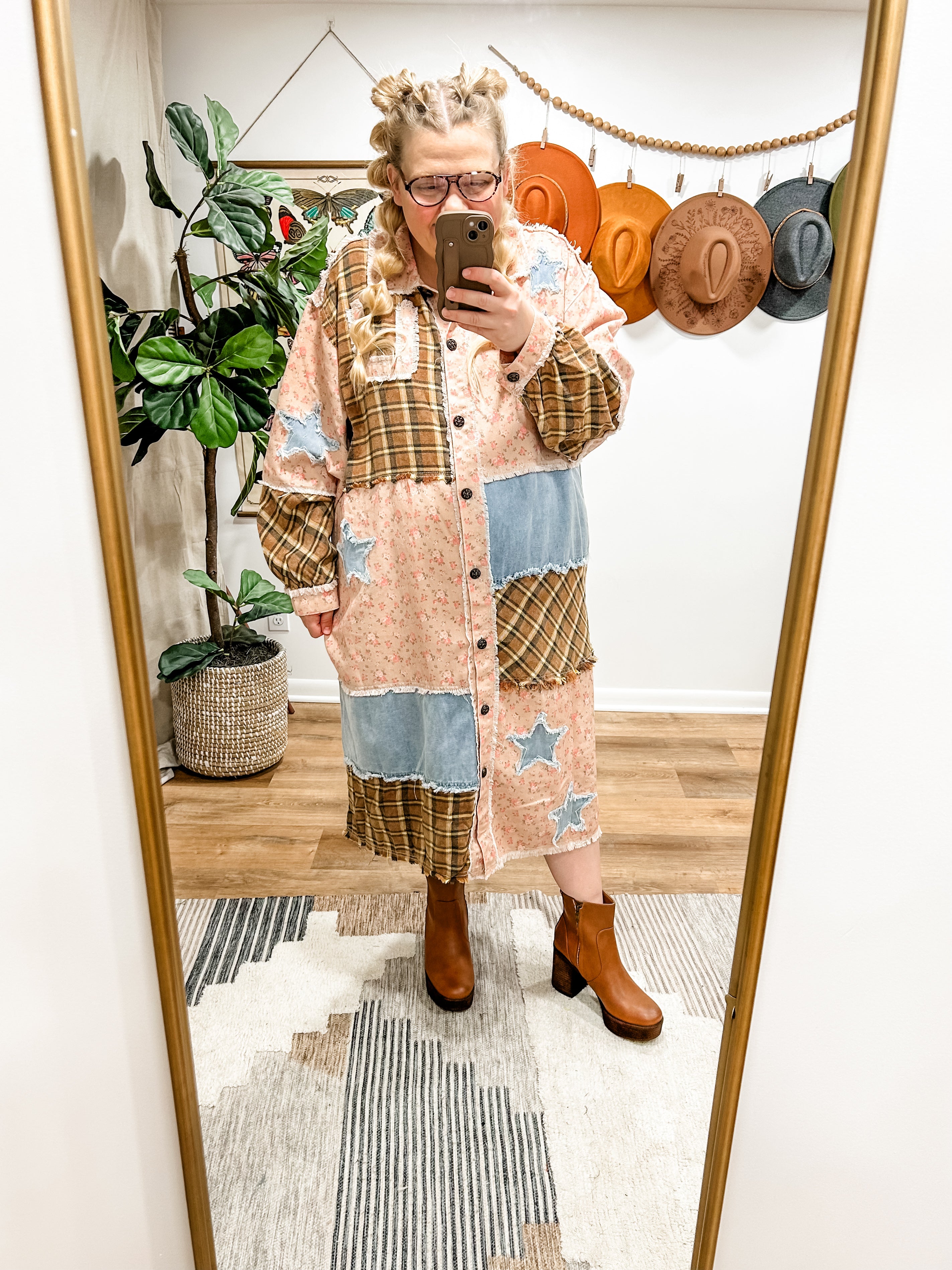 Size recommendations: true to size or size down. It has functional buttons and can be worn open.