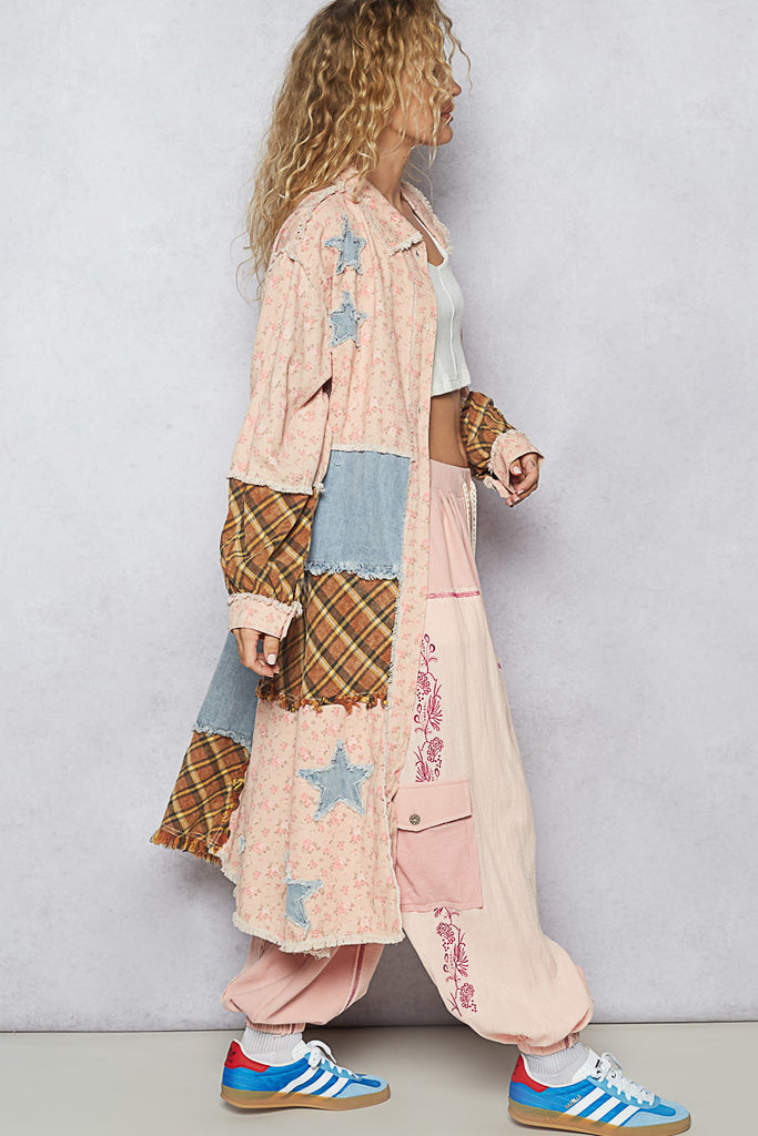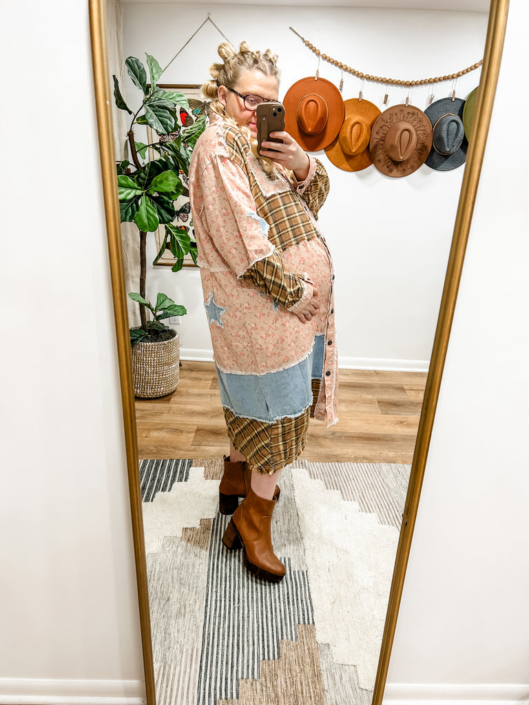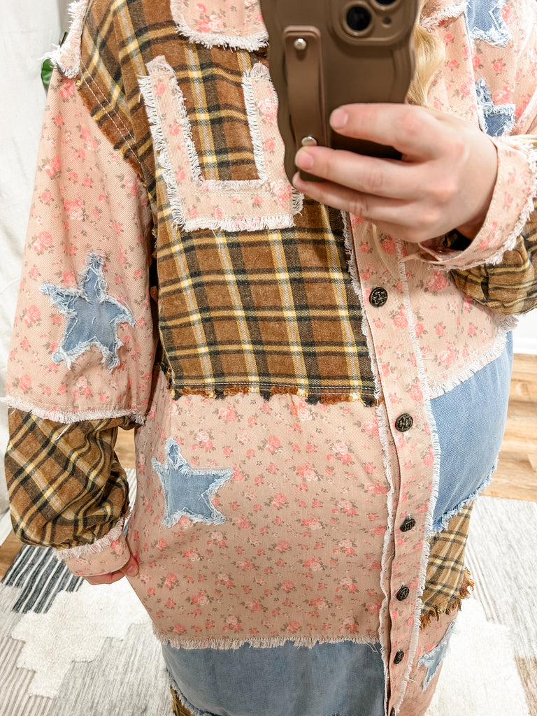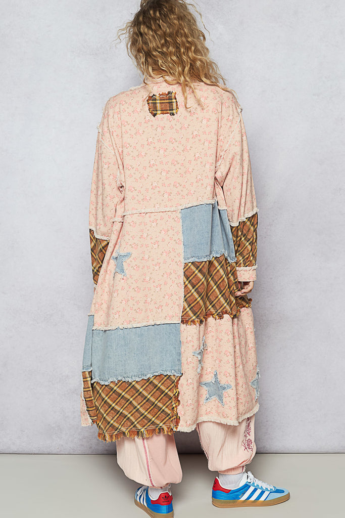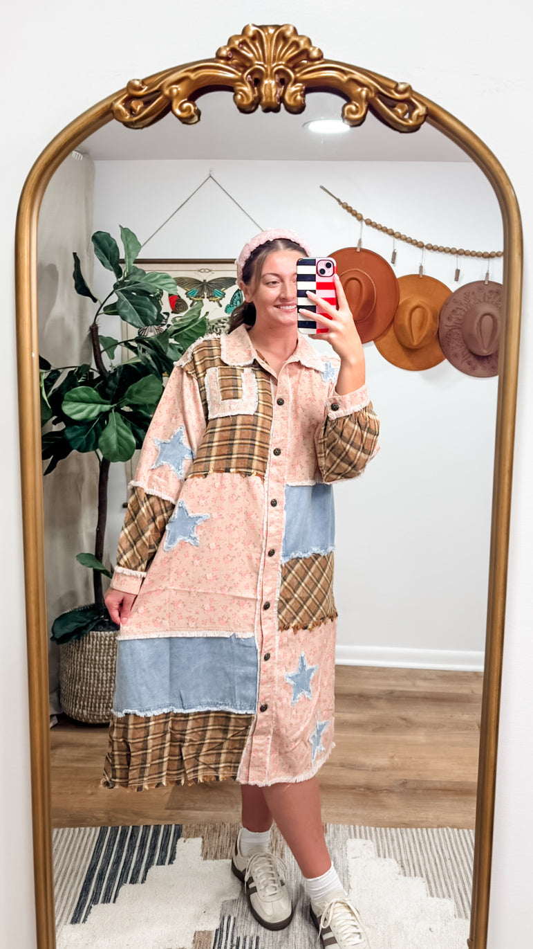 Size recommendations: true to size or size down. It has functional buttons and can be worn open.