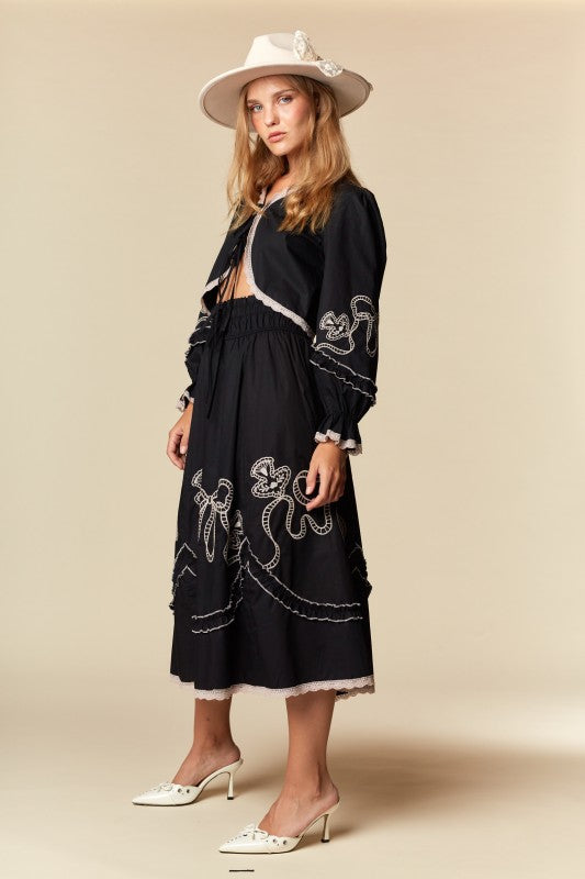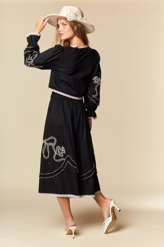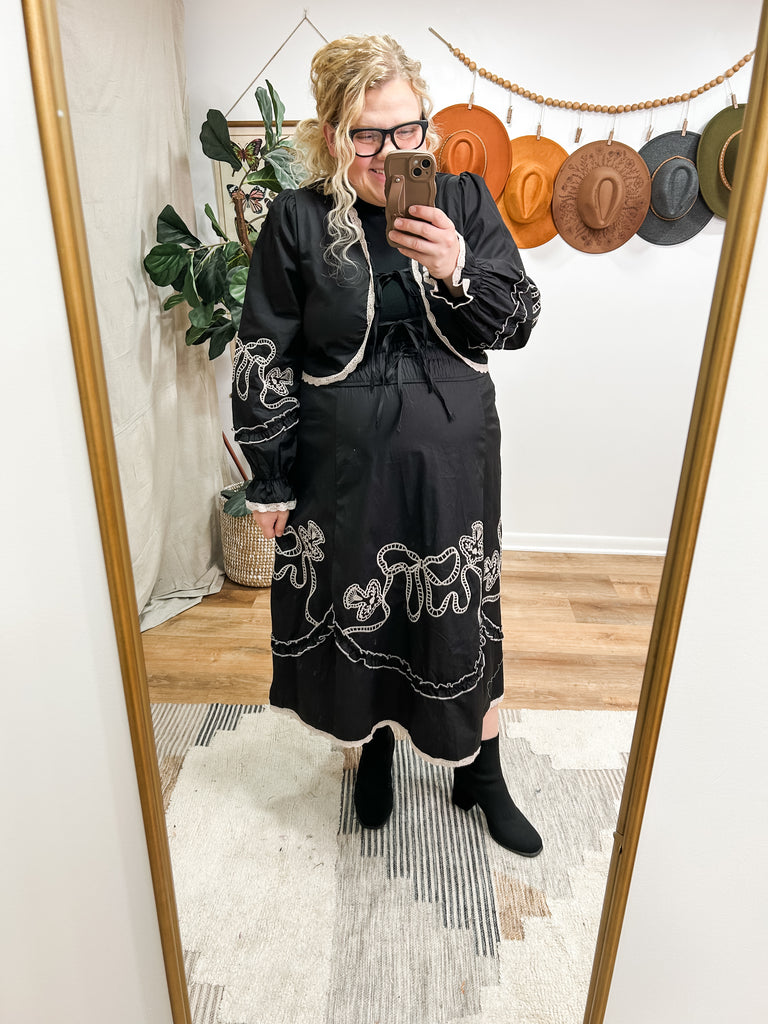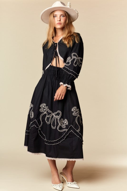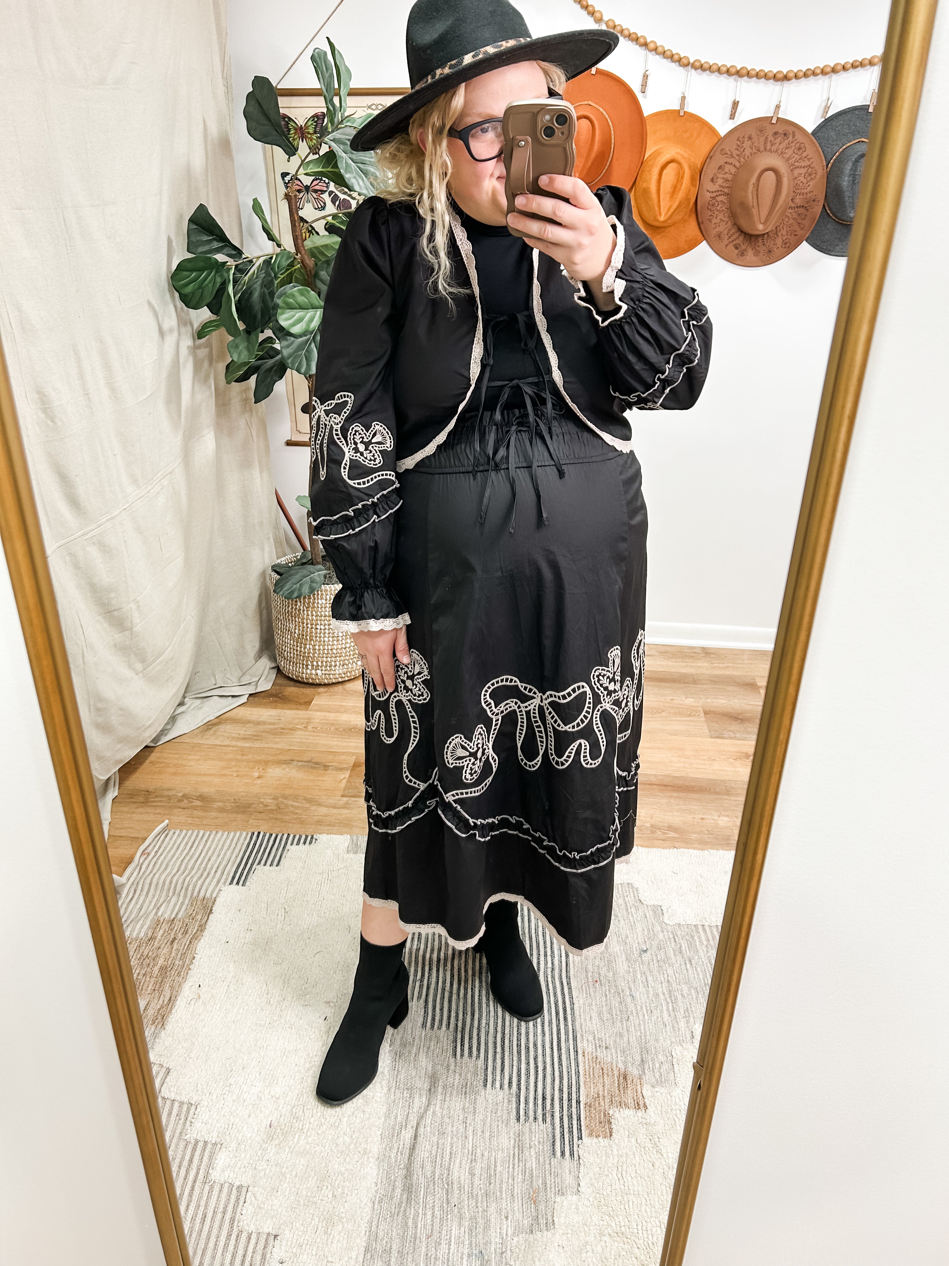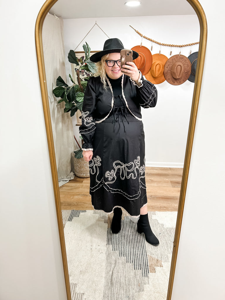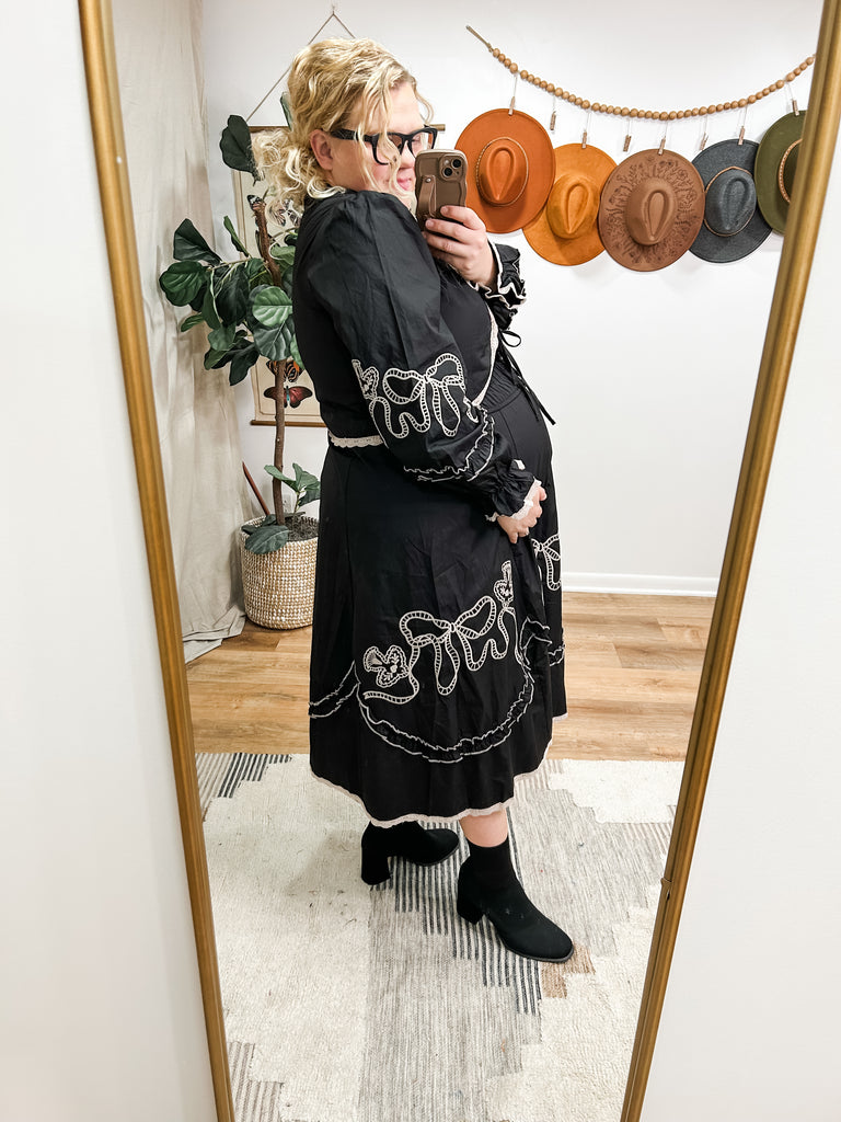 Size recommendations: true to size. This dress is embroidered. The skirt has a smocked, elastic waistband.