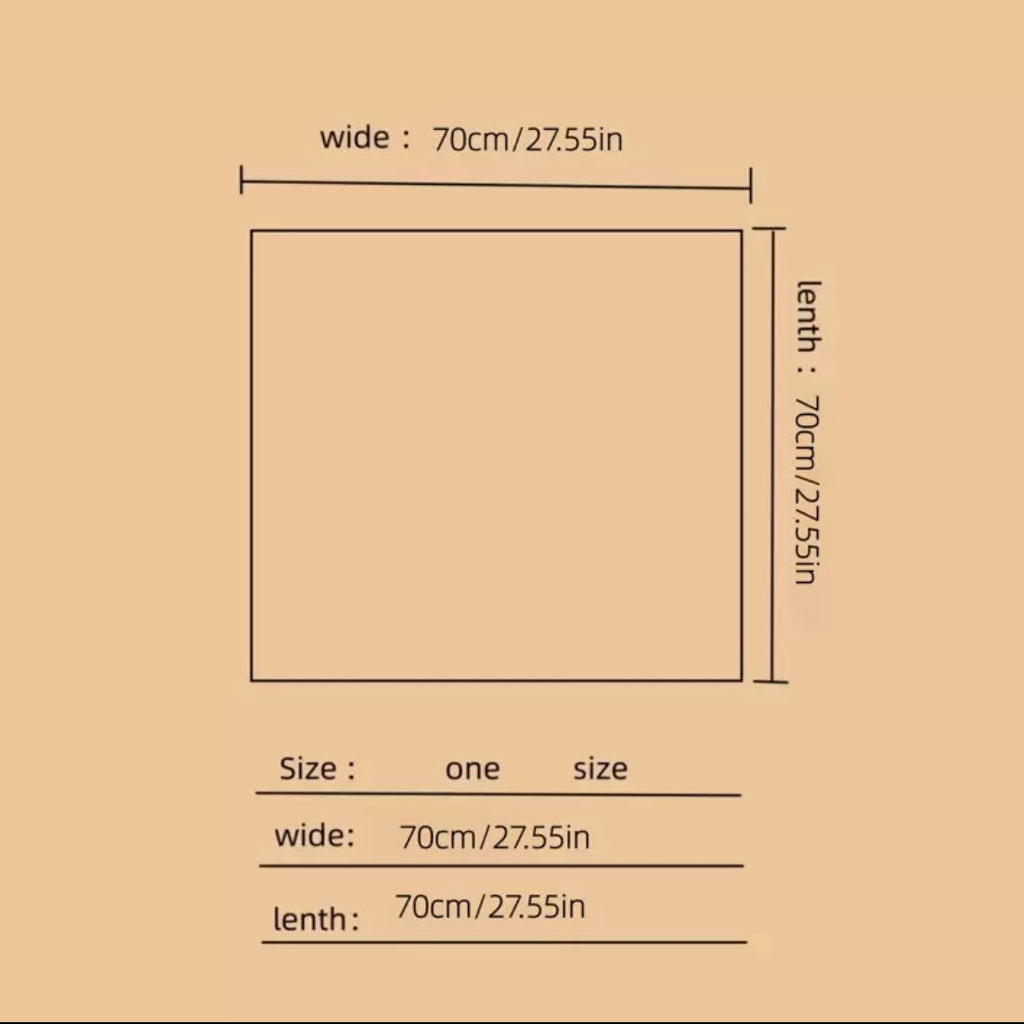 This scarf can be used in the hair, on the neck, or added to a handbag. There are several fun uses for a scarf. They add so much to an outfit. This scarf is approximately 26” x 26”.