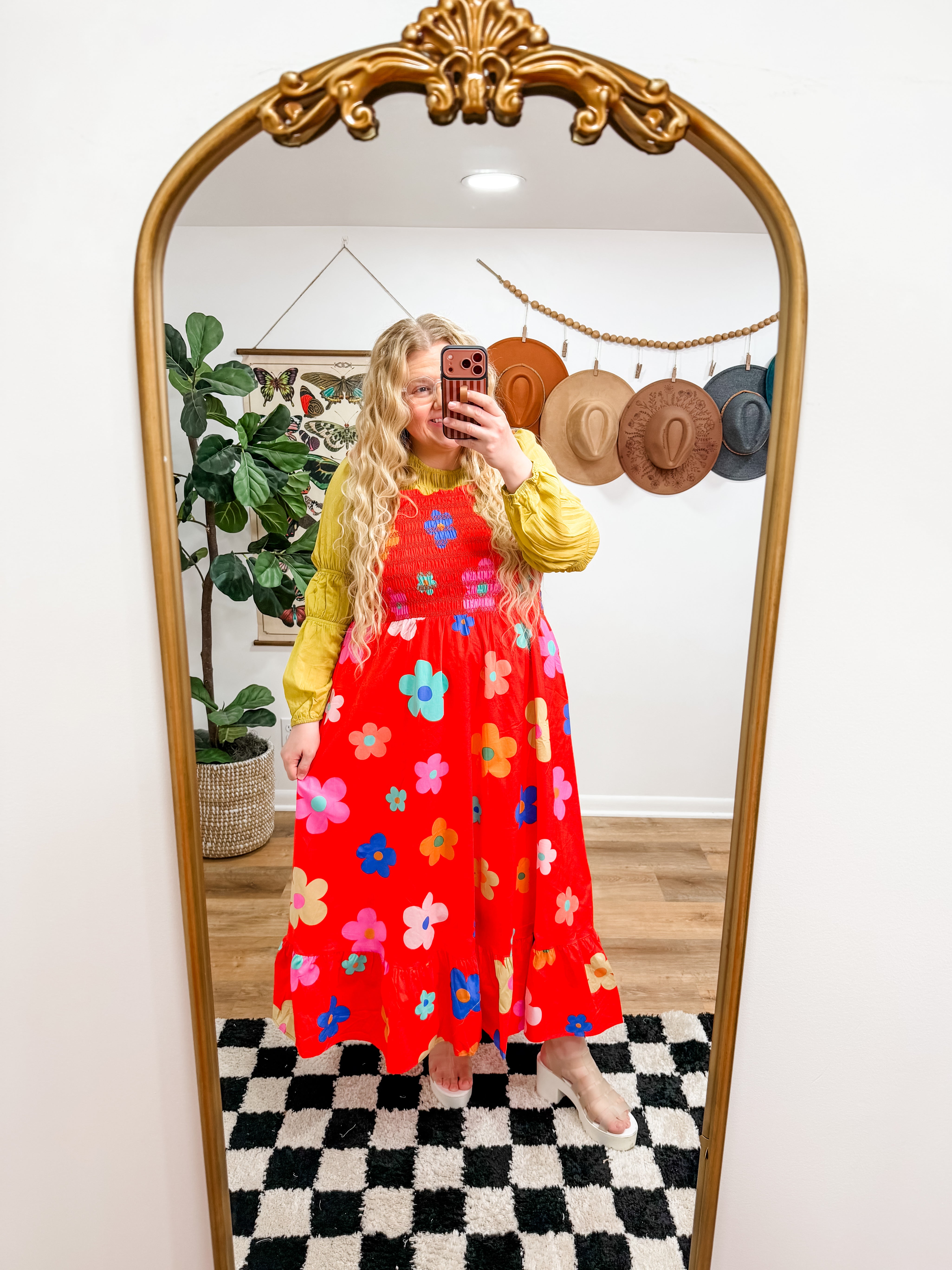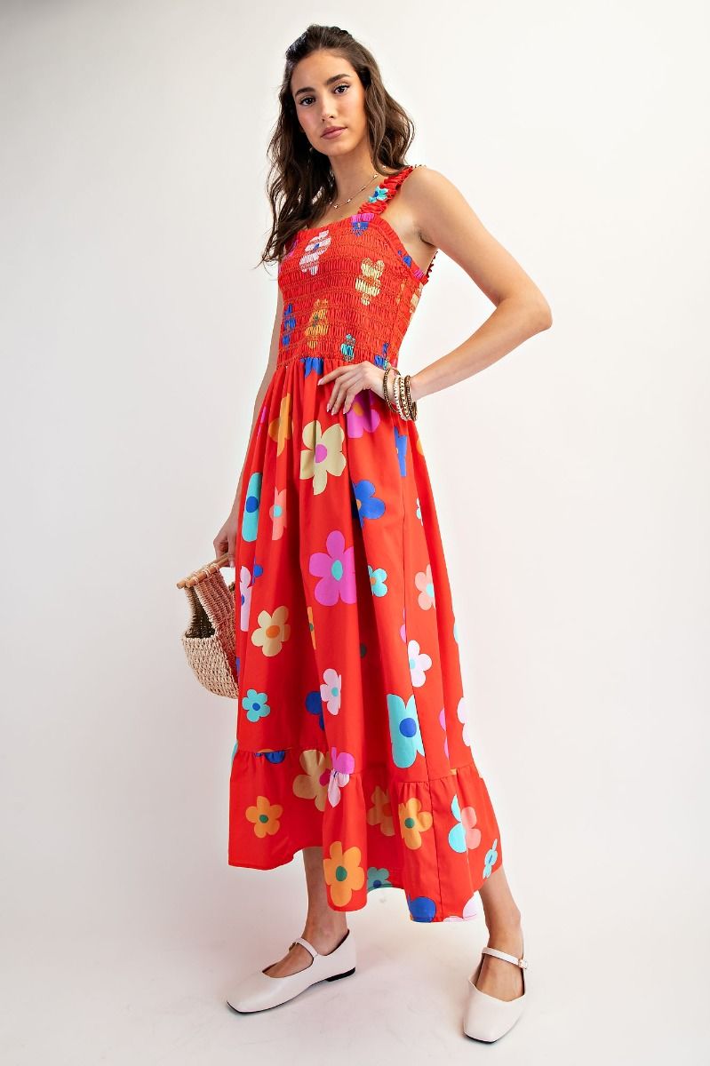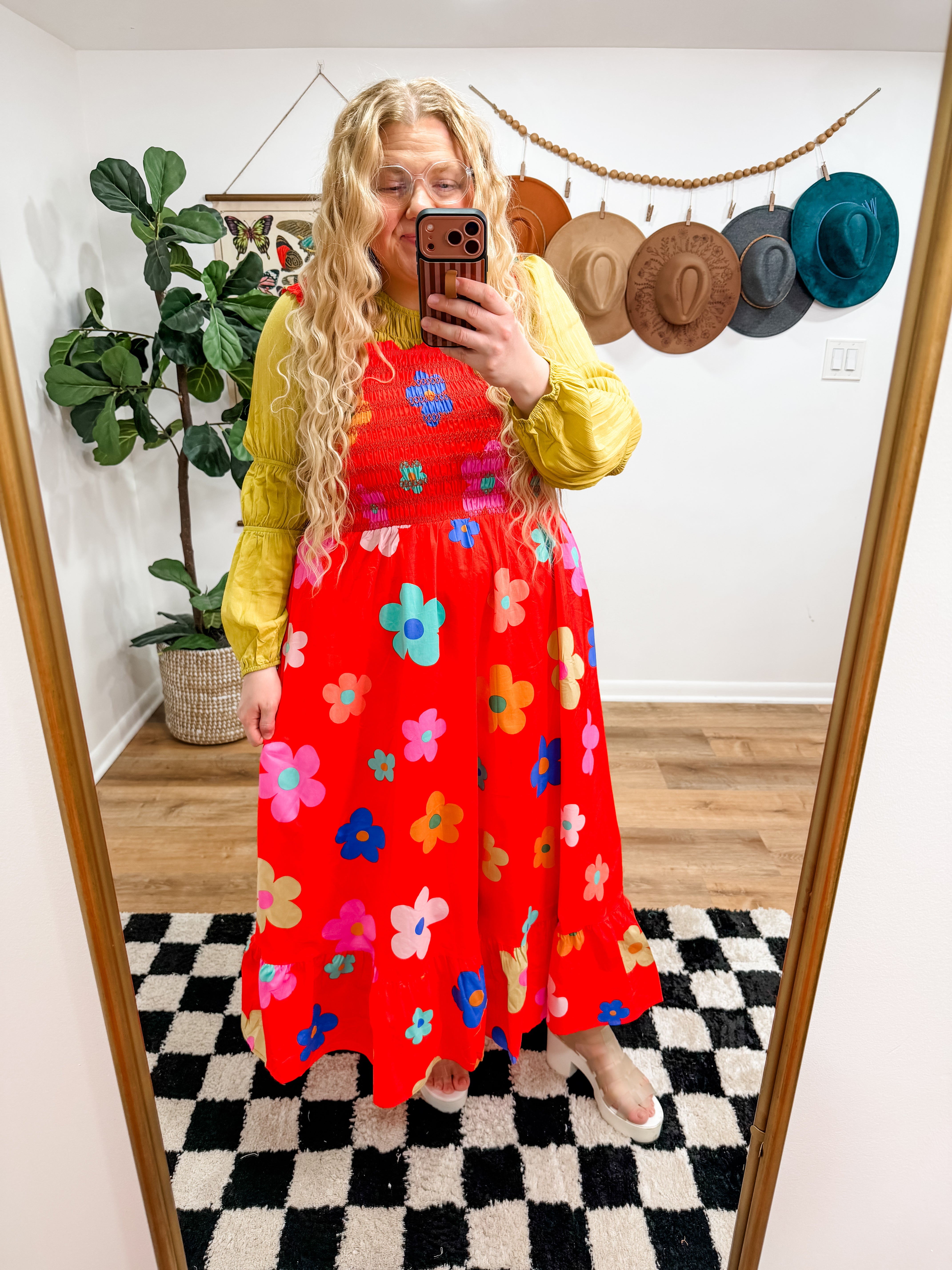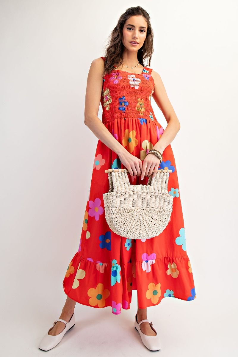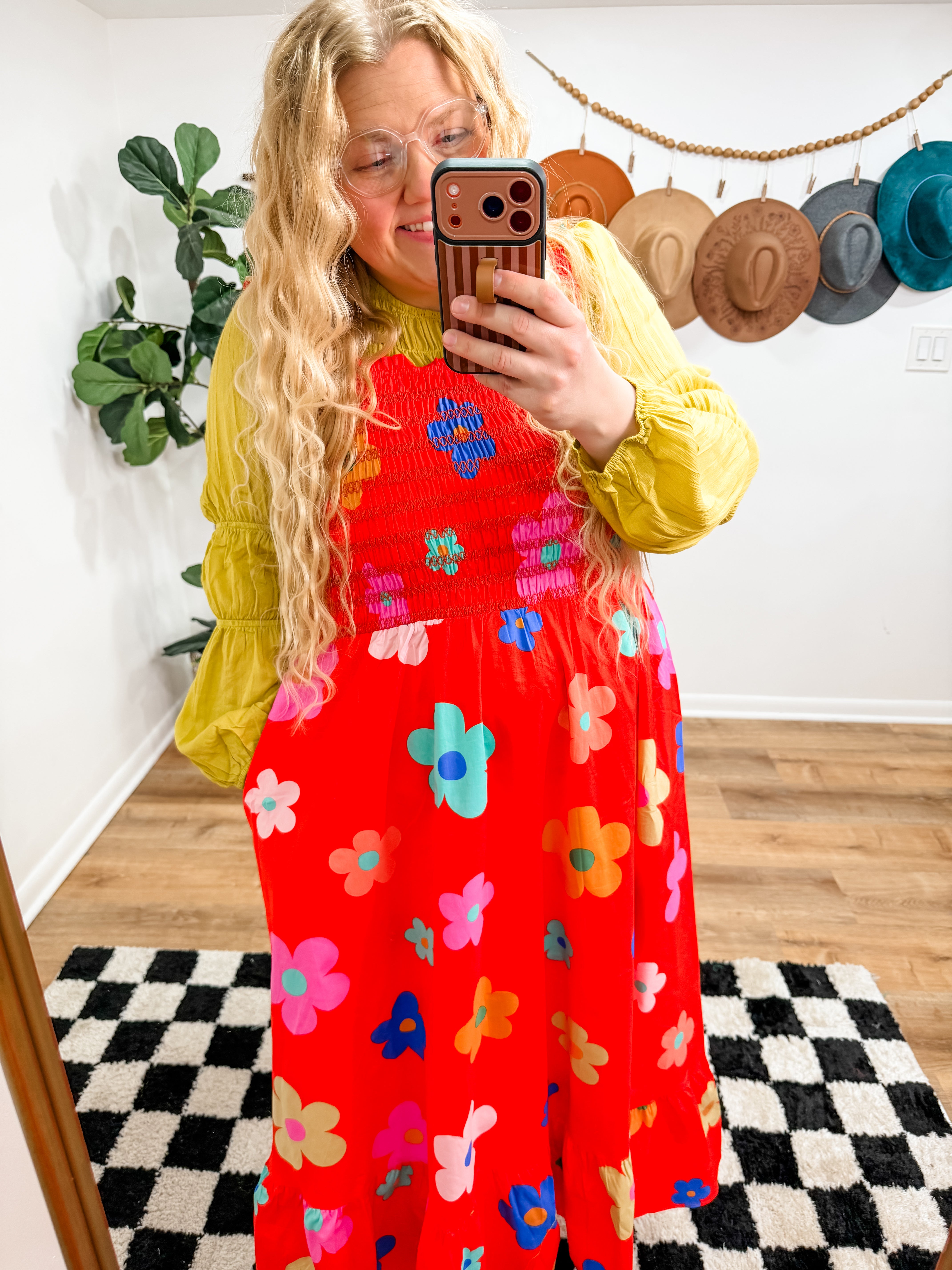 Size recommendations: true to size. The top has a stretchy, smocking. It has pockets!