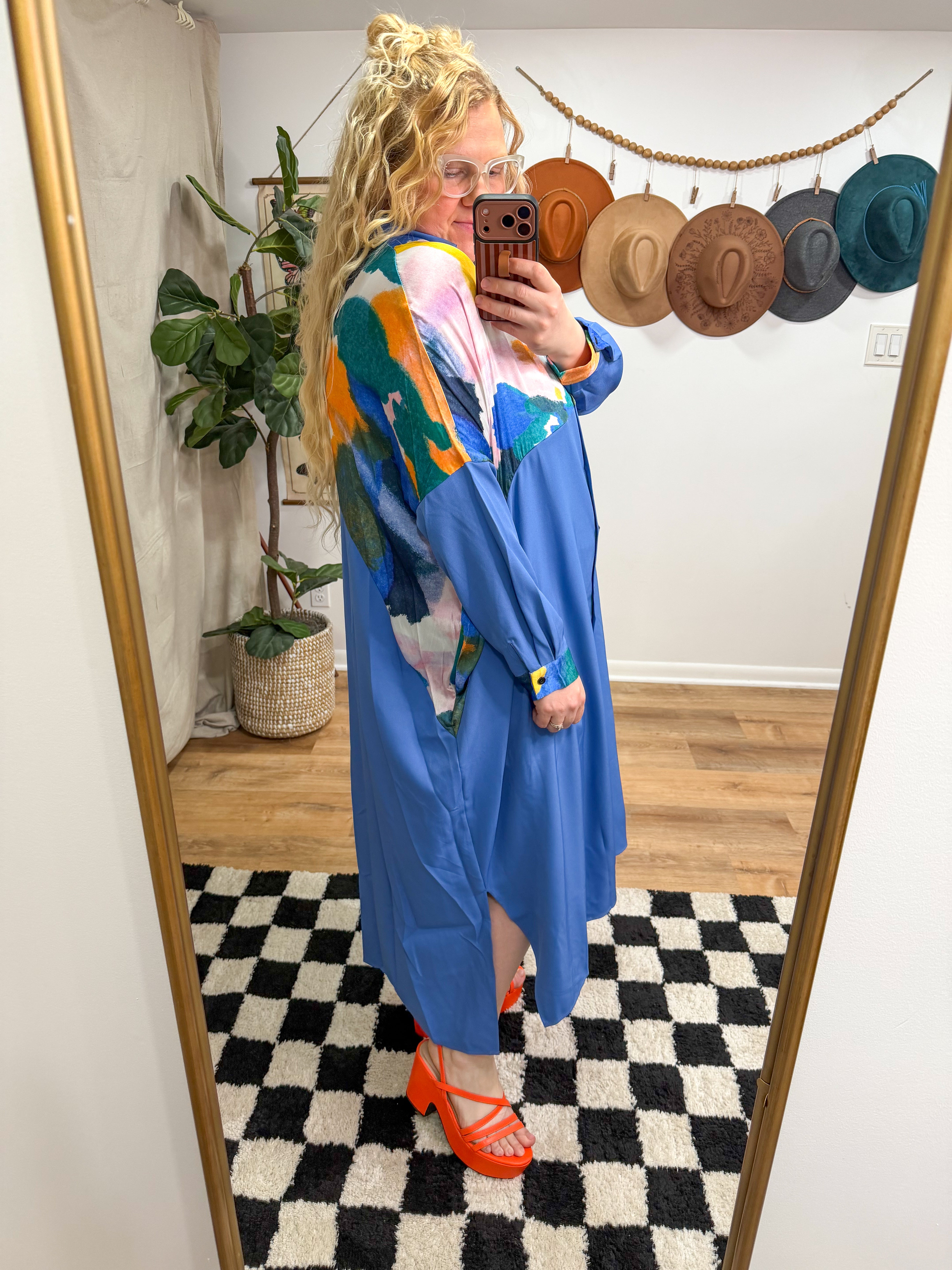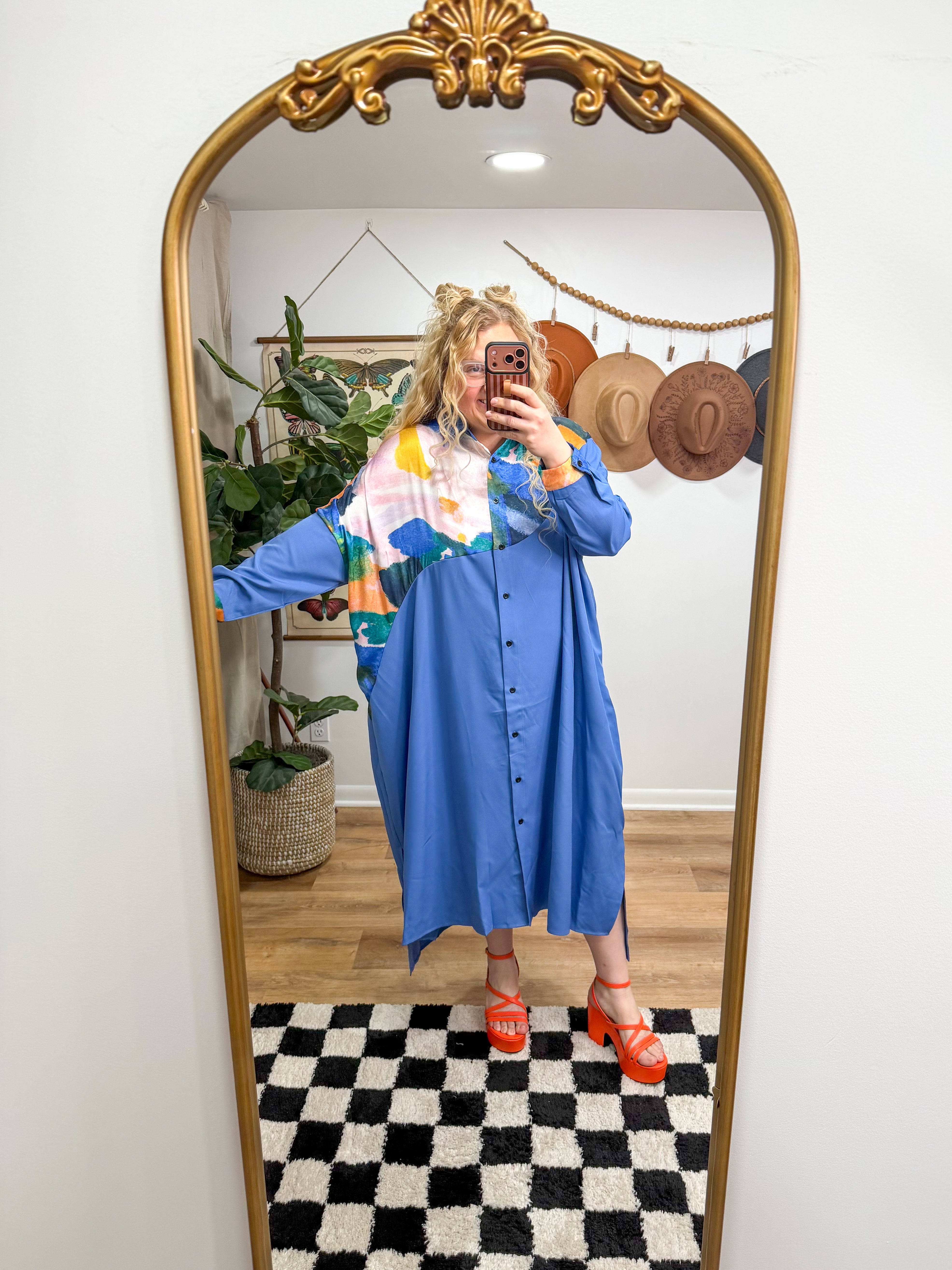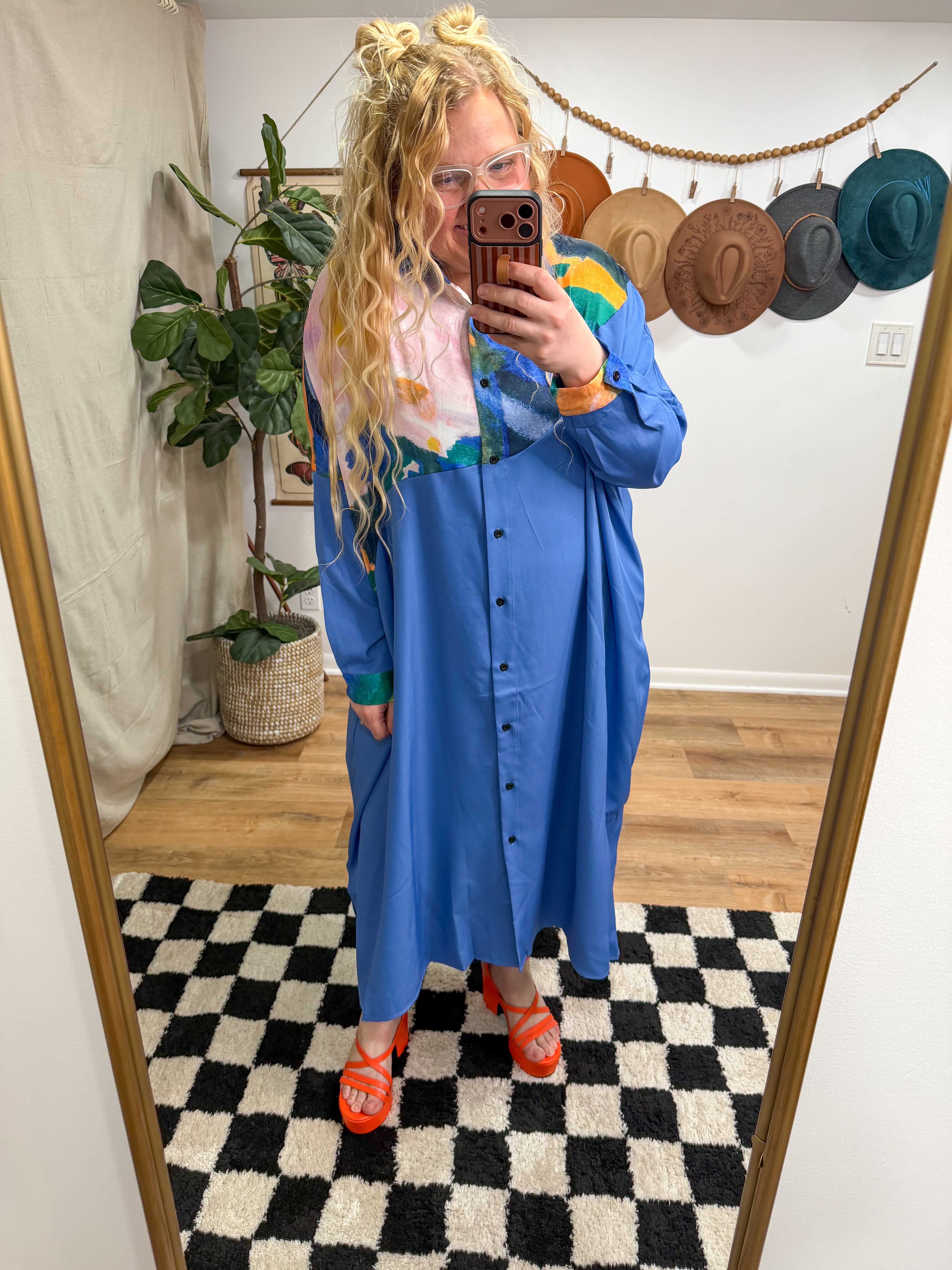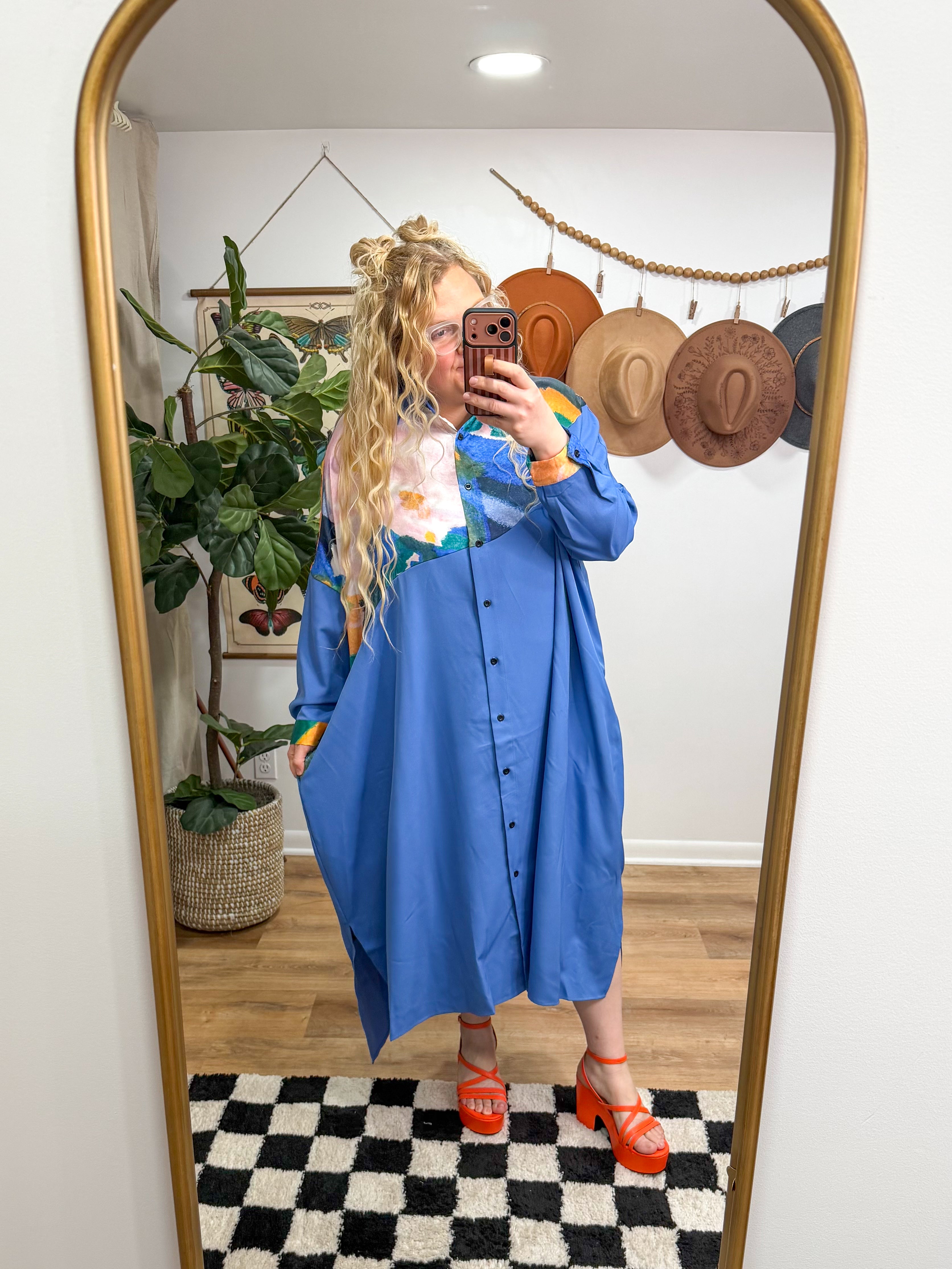 Size recommendations: Size down. This dress is very oversized! It is meant to be oversized but we still recommend sizing down. It has pockets. It is a bubble style dress. The XL would fit up to 5XL. Kayla wears the small.