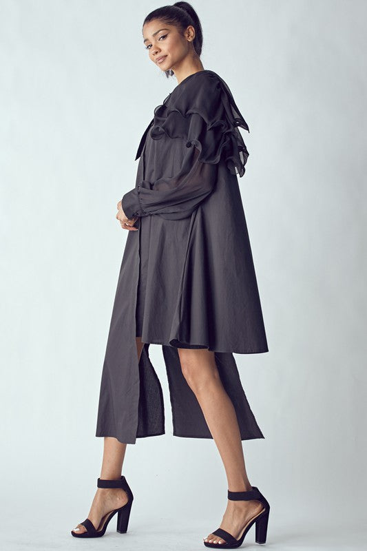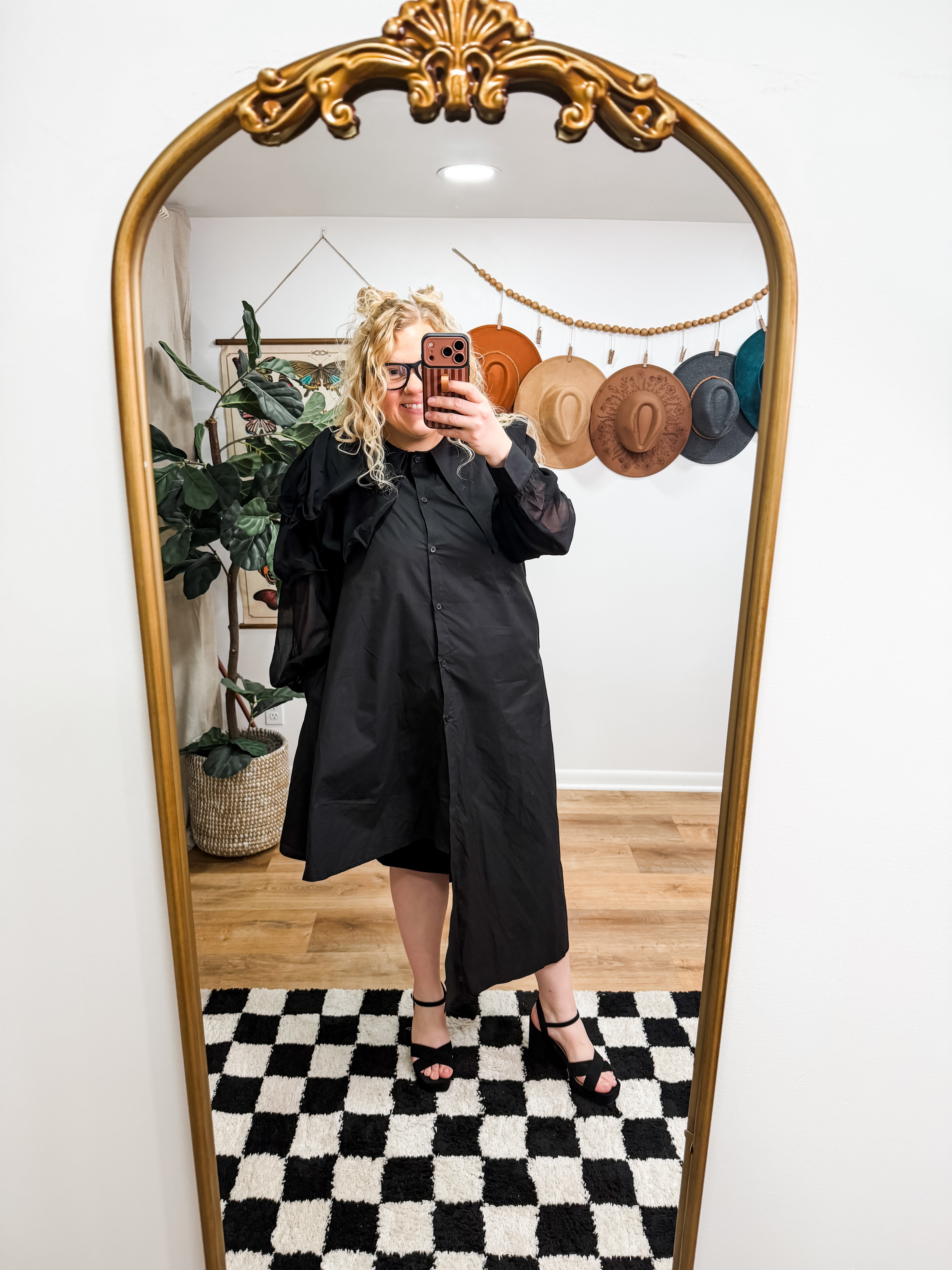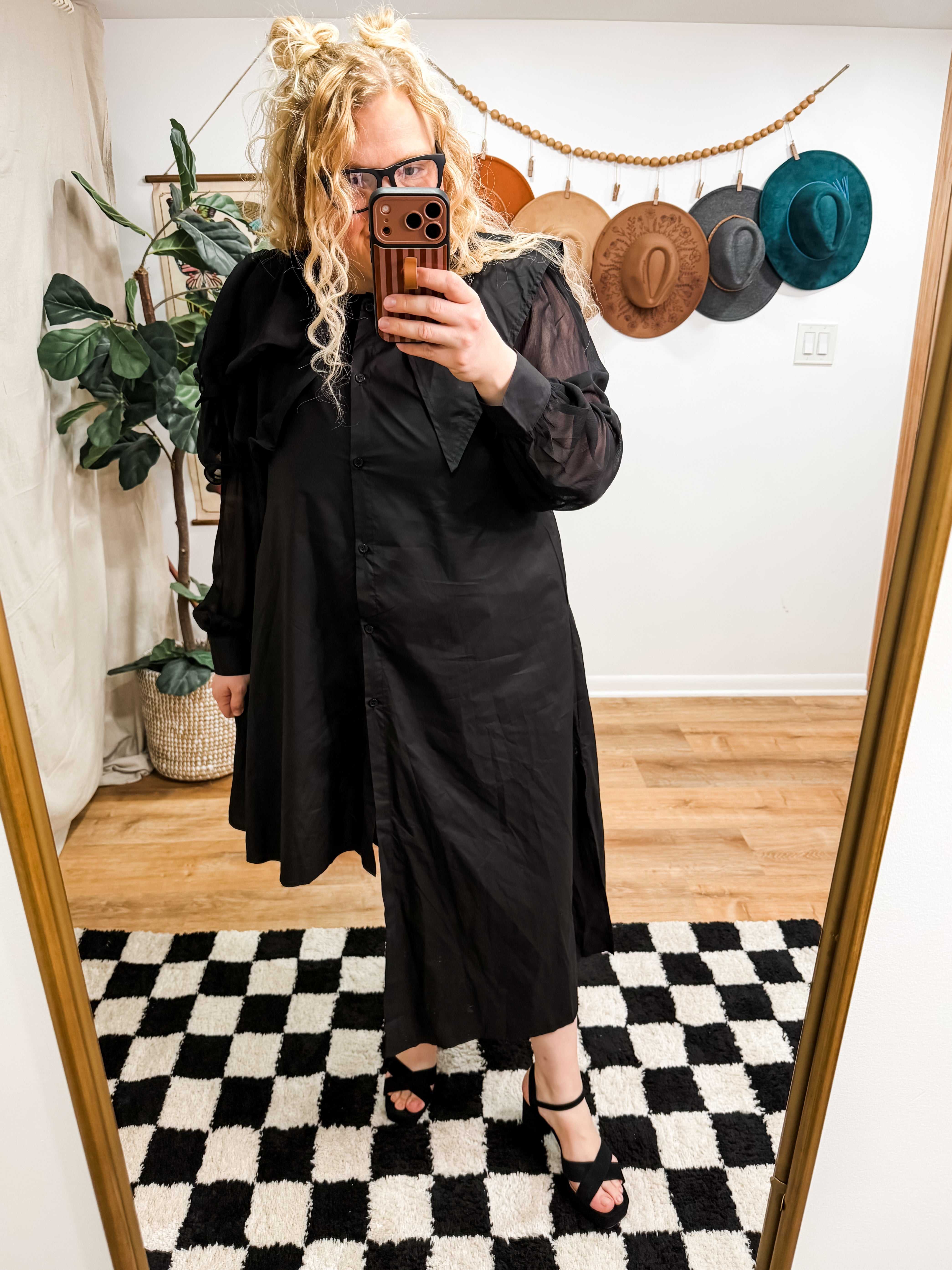 Size recommendations: True to size or size up. It has functional buttons and pockets.