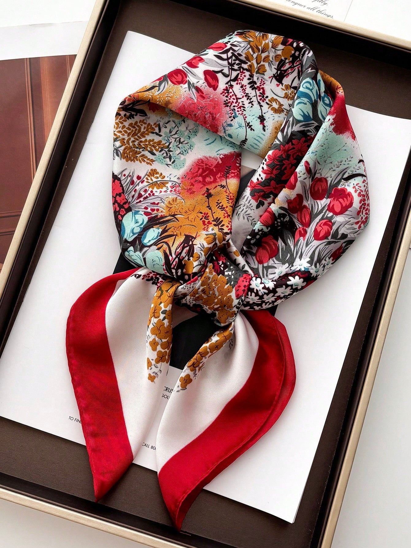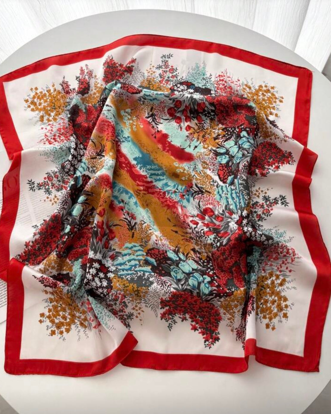 This scarf can be used in the hair, on the neck, or added to a handbag. There are several fun uses for a scarf. They add so much to an outfit. This scarf is approximately 26” x 26”.