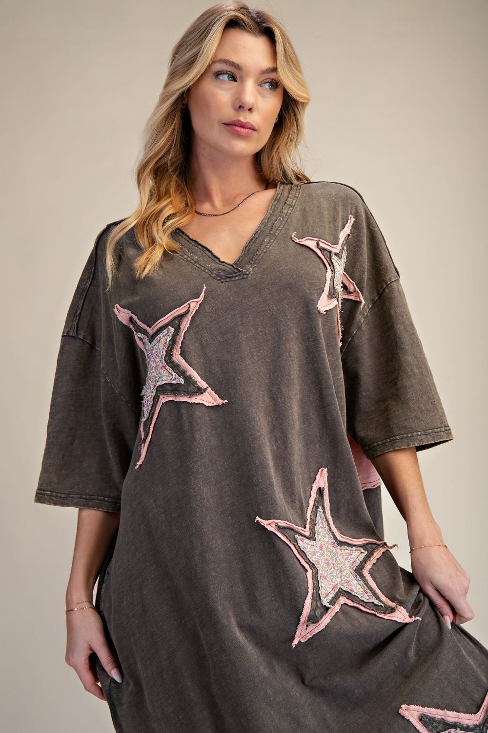 She’s A Star T-Shirt Dress in Gray