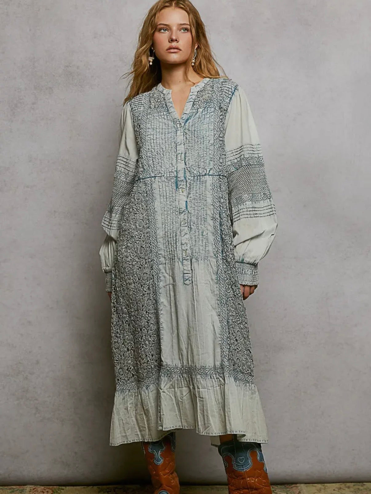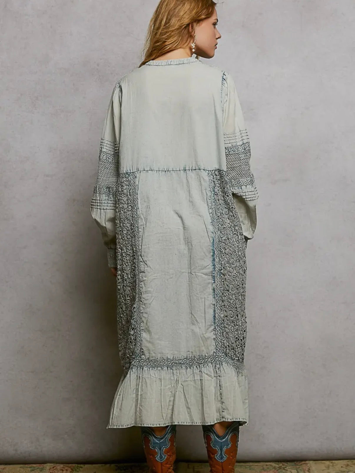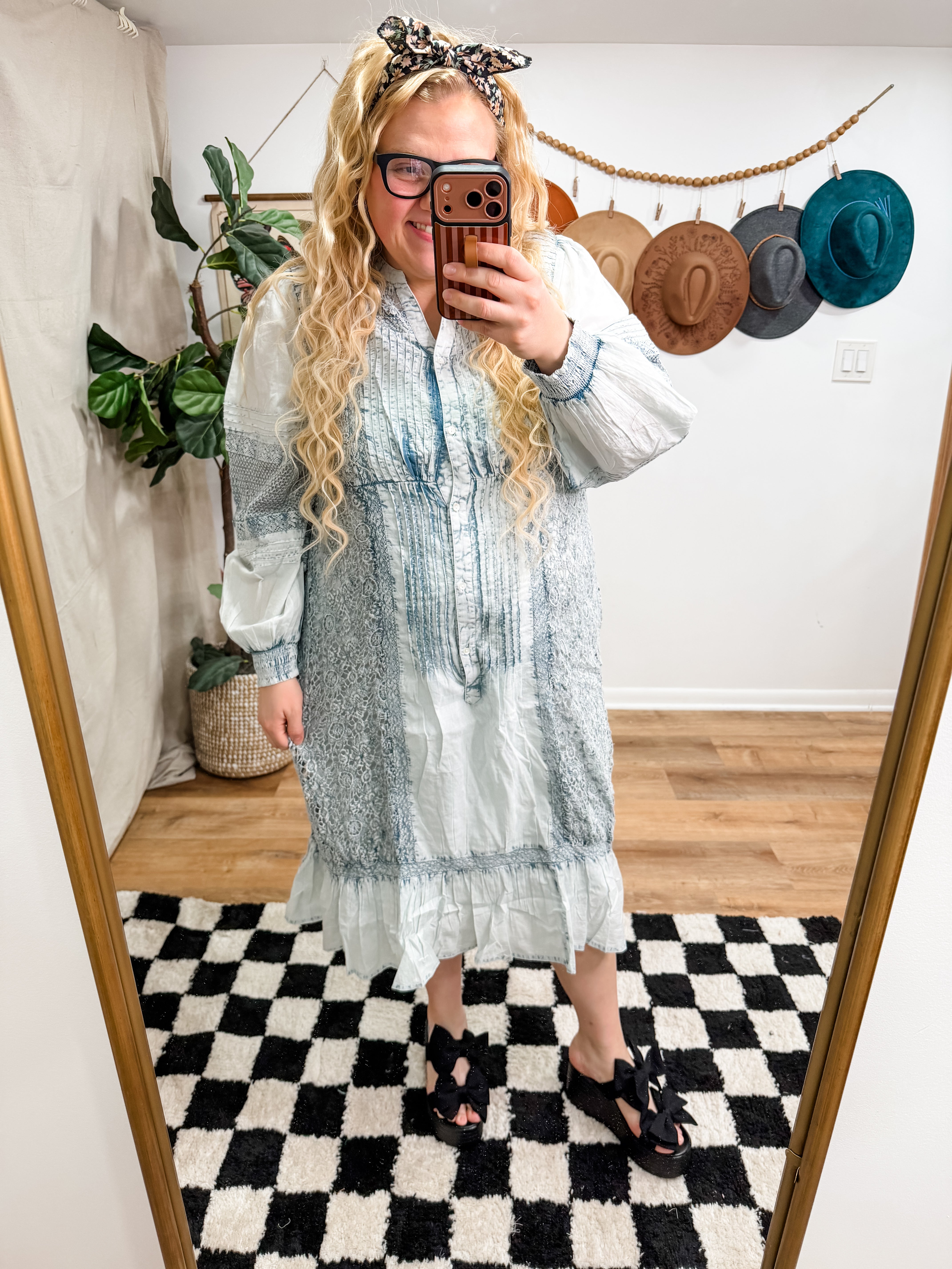 Size recommendations: True to size. Size up if between sizes. This dress has a gorgeous lace overlay. It has functional buttons.